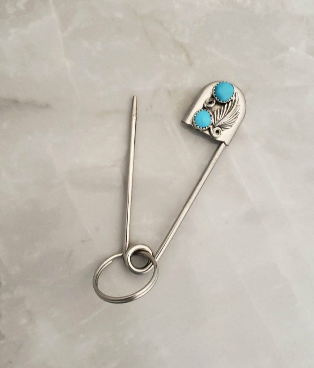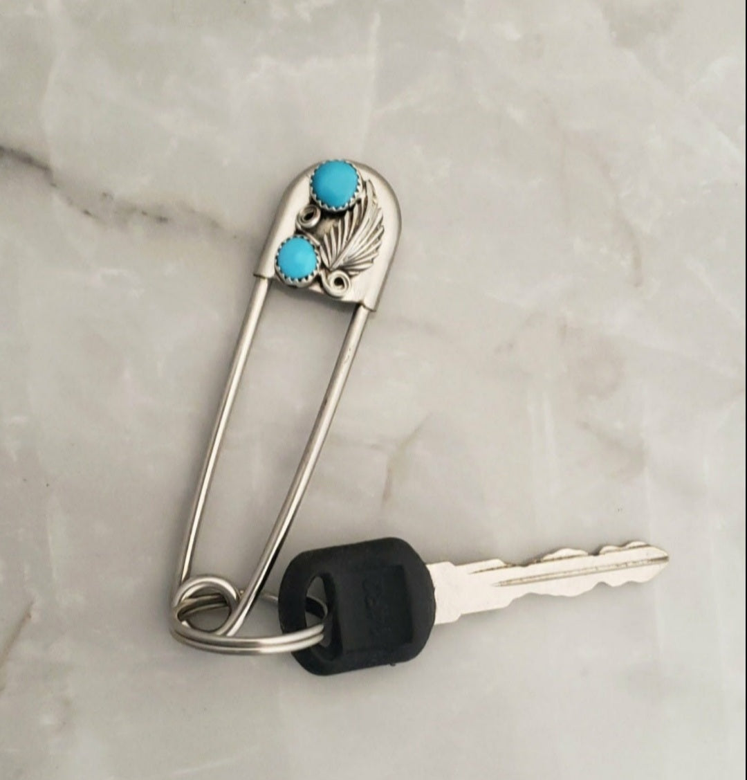 Sterling Silver Turquoise & Black Onyx Keychain/Safety Pin