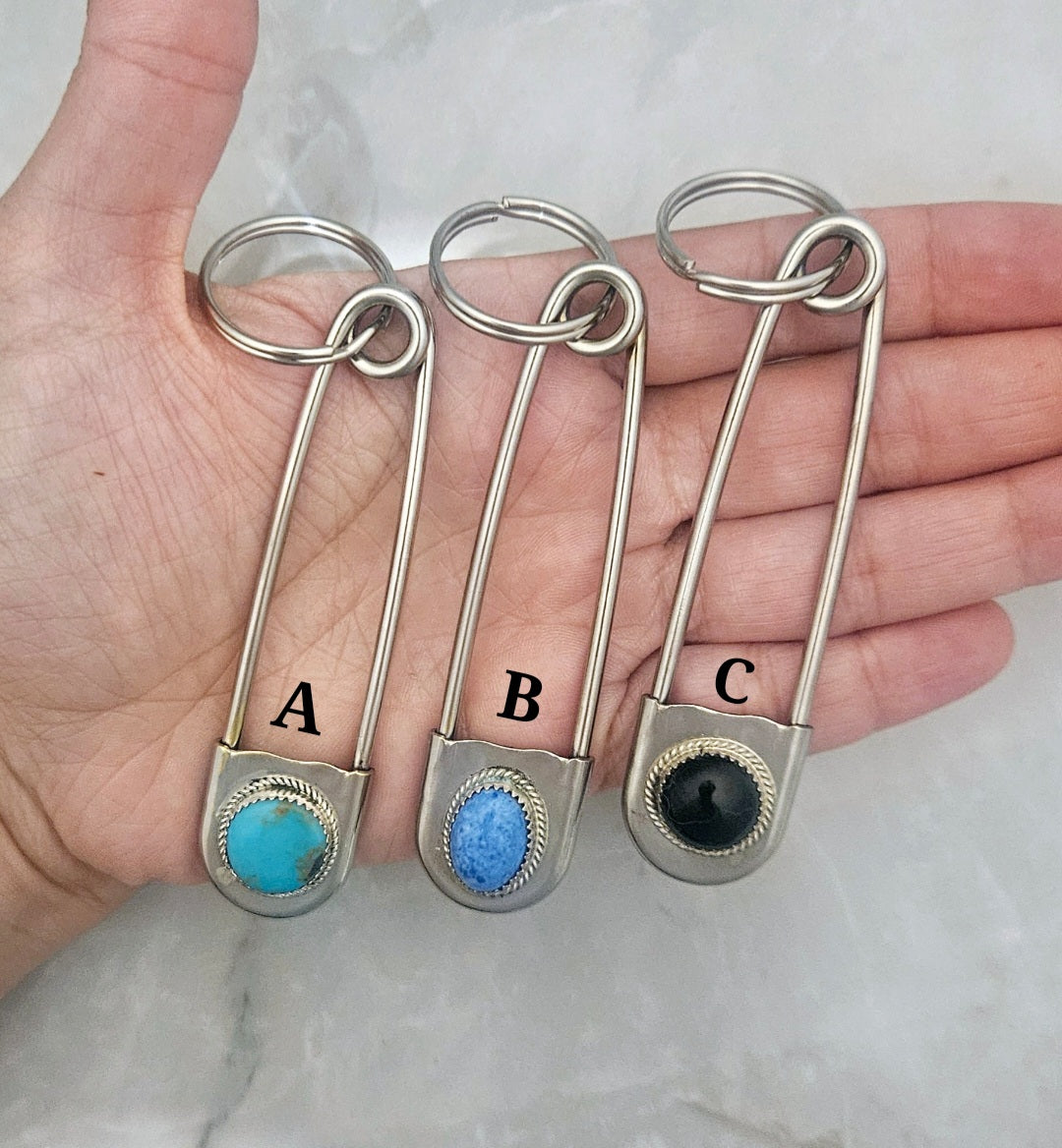 [{"id":42429899473001,"title":"A","option1":"A","option2":null,"option3":null,"sku":null,"requires_shipping":true,"taxable":true,"featured_image":null,"available":true,"name":"Sterling Silver Turquoise \u0026 Black Onyx Keychain\/Safety Pin - A","public_title":"A","options":["A"],"price":6000,"weight":85,"compare_at_price":null,"inventory_management":"shopify","barcode":null,"requires_selling_plan":false,"selling_plan_allocations":[]},{"id":42429899505769,"title":"B","option1":"B","option2":null,"option3":null,"sku":null,"requires_shipping":true,"taxable":true,"featured_image":null,"available":true,"name":"Sterling Silver Turquoise \u0026 Black Onyx Keychain\/Safety Pin - B","public_title":"B","options":["B"],"price":6000,"weight":85,"compare_at_price":null,"inventory_management":"shopify","barcode":null,"requires_selling_plan":false,"selling_plan_allocations":[]},{"id":42429899538537,"title":"C","option1":"C","option2":null,"option3":null,"sku":null,"requires_shipping":true,"taxable":true,"featured_image":null,"available":true,"name":"Sterling Silver Turquoise \u0026 Black Onyx Keychain\/Safety Pin - C","public_title":"C","options":["C"],"price":6000,"weight":85,"compare_at_price":null,"inventory_management":"shopify","barcode":null,"requires_selling_plan":false,"selling_plan_allocations":[]}]
