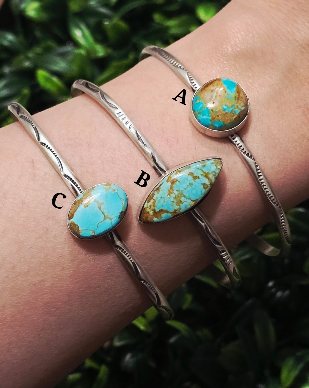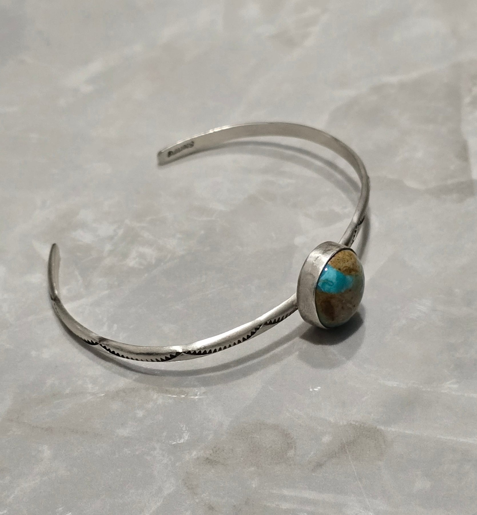 Stamped Sterling Silver Turquoise Stacker Adjustable Bracelets
