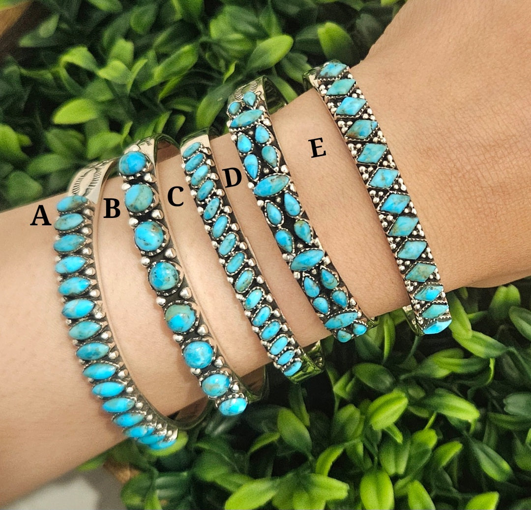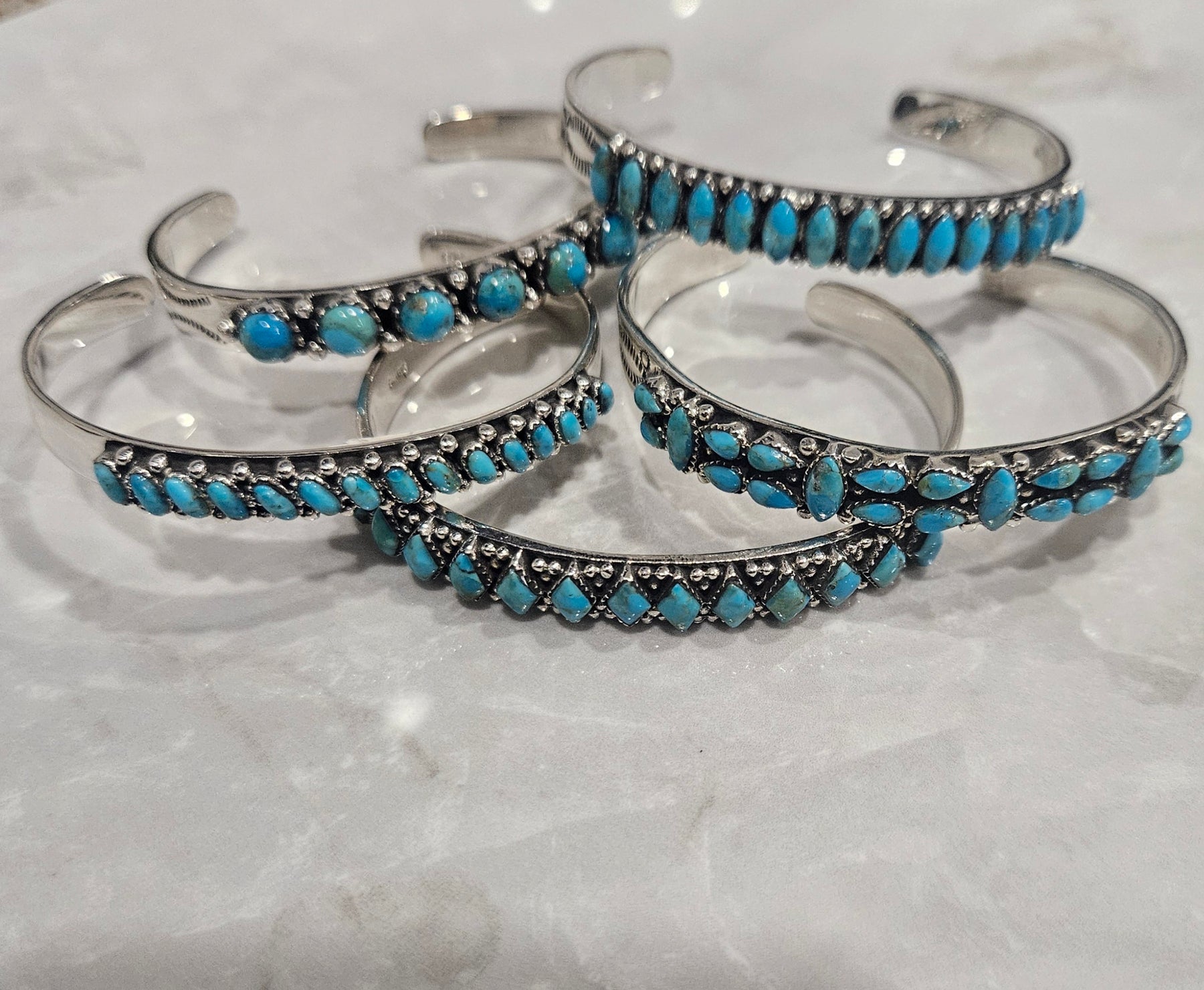 Sterling Silver Turquoise Multiple Stone Stacker Cuff Bracelets