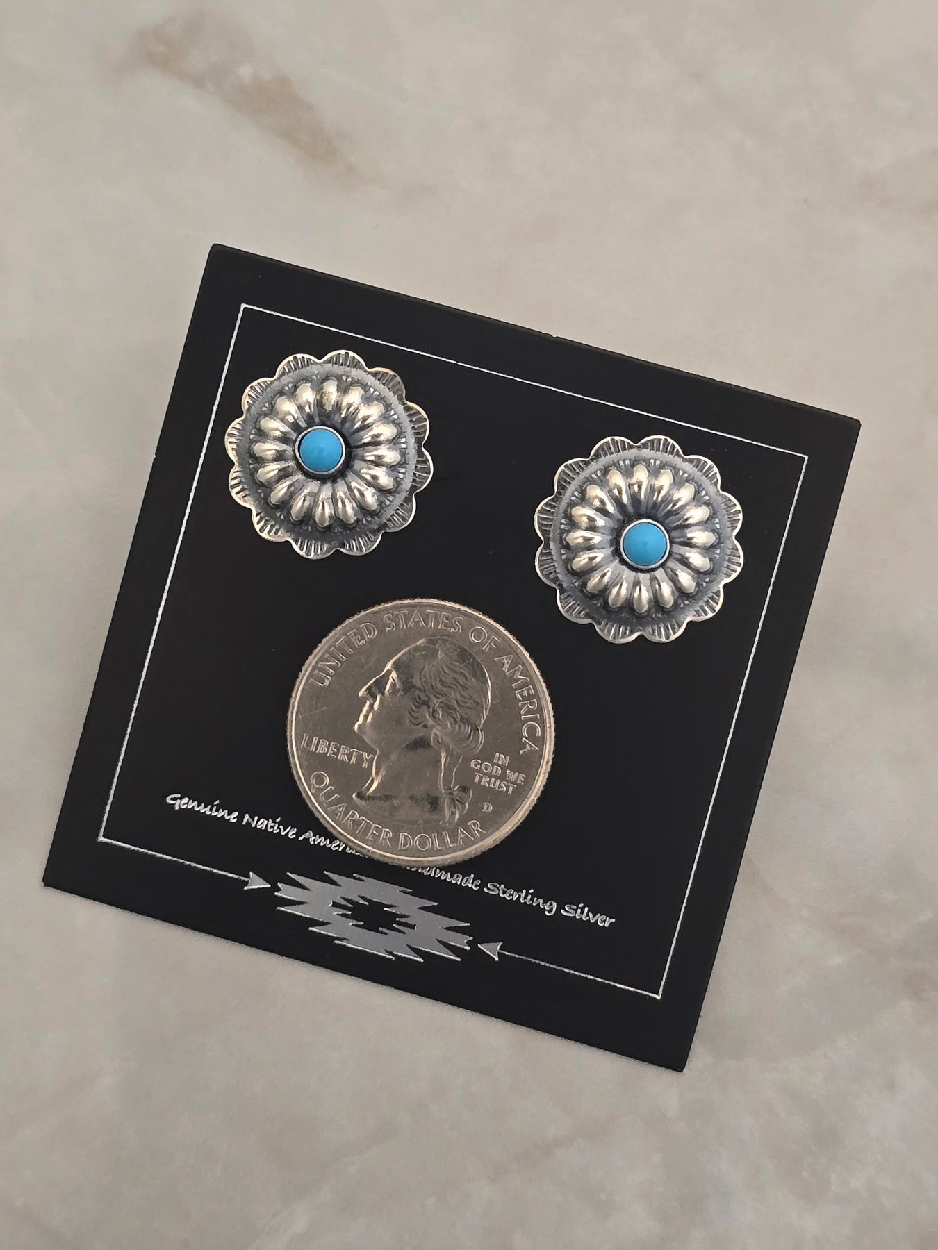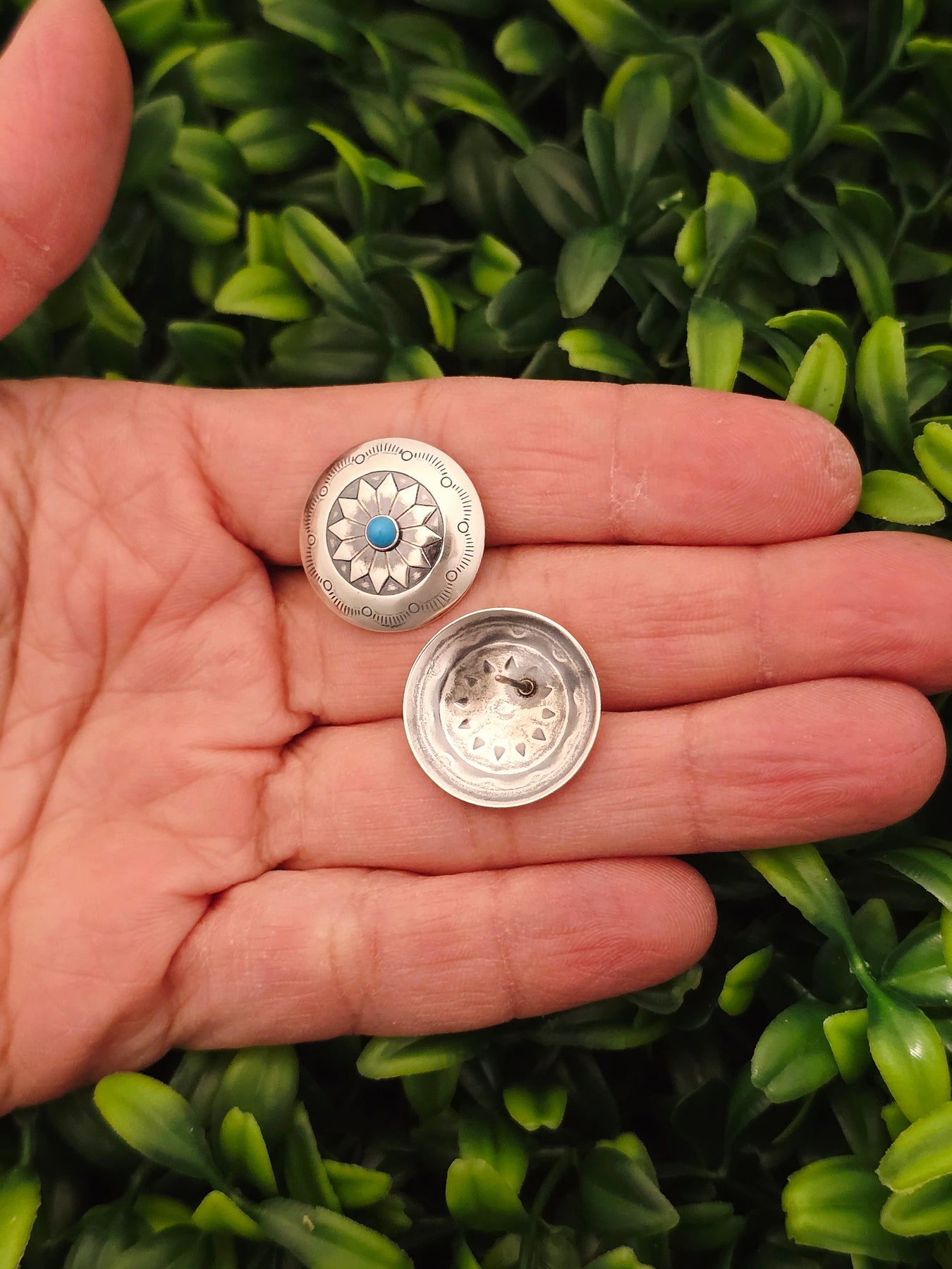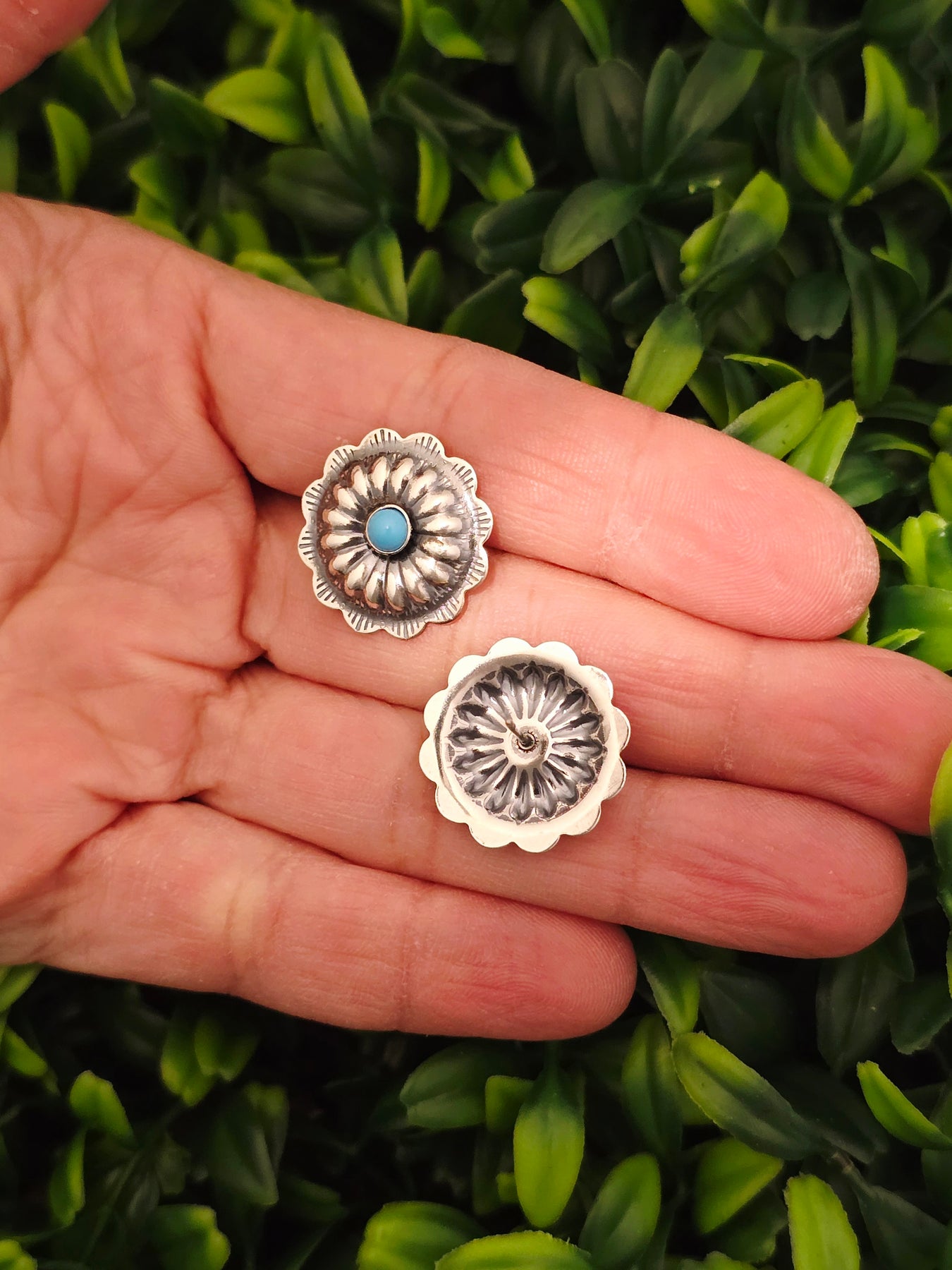 Sterling Silver Turquoise Concho Earrings