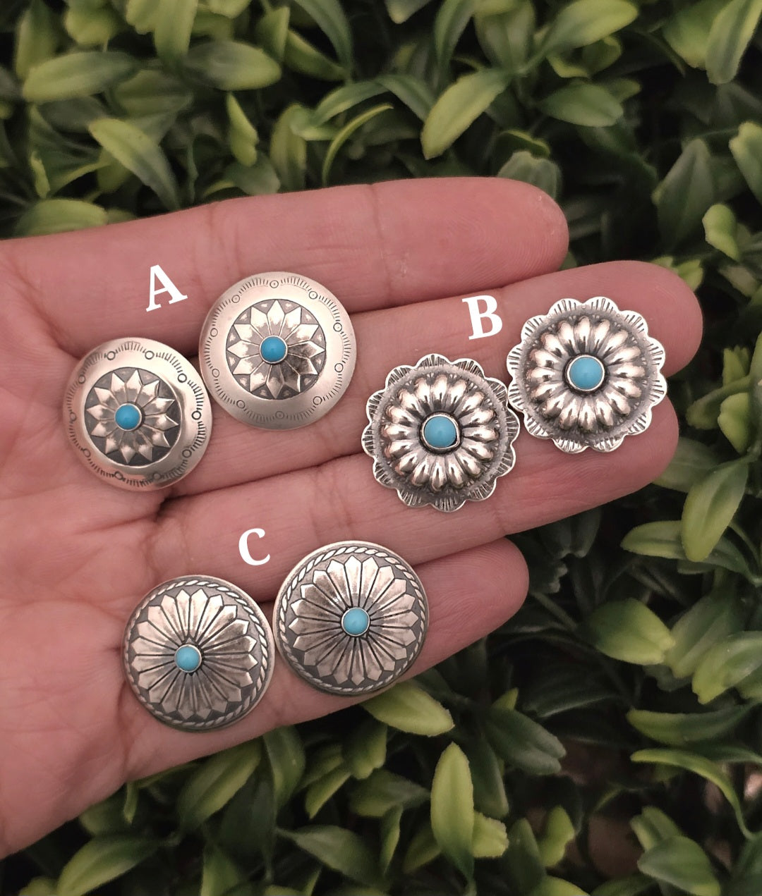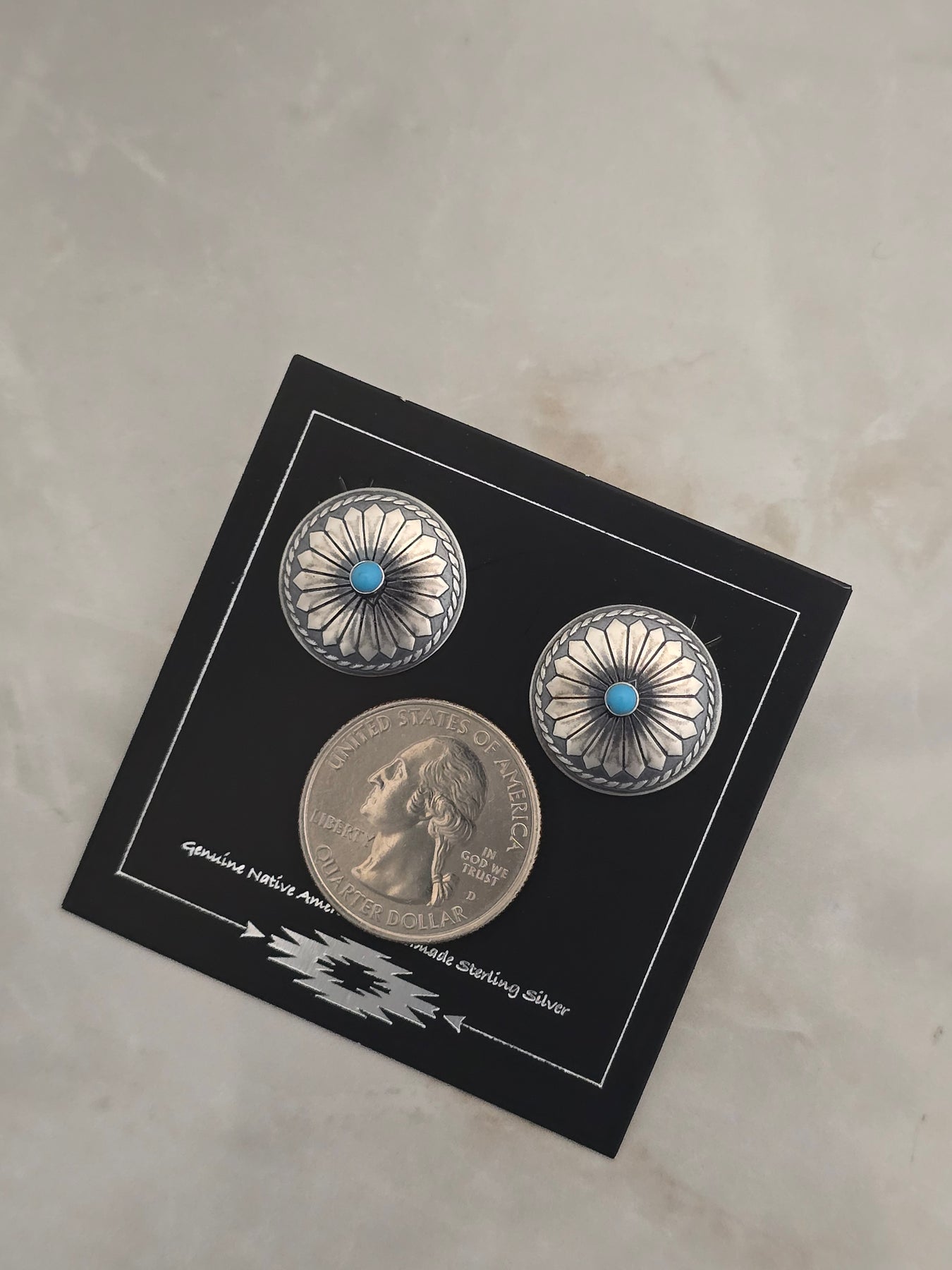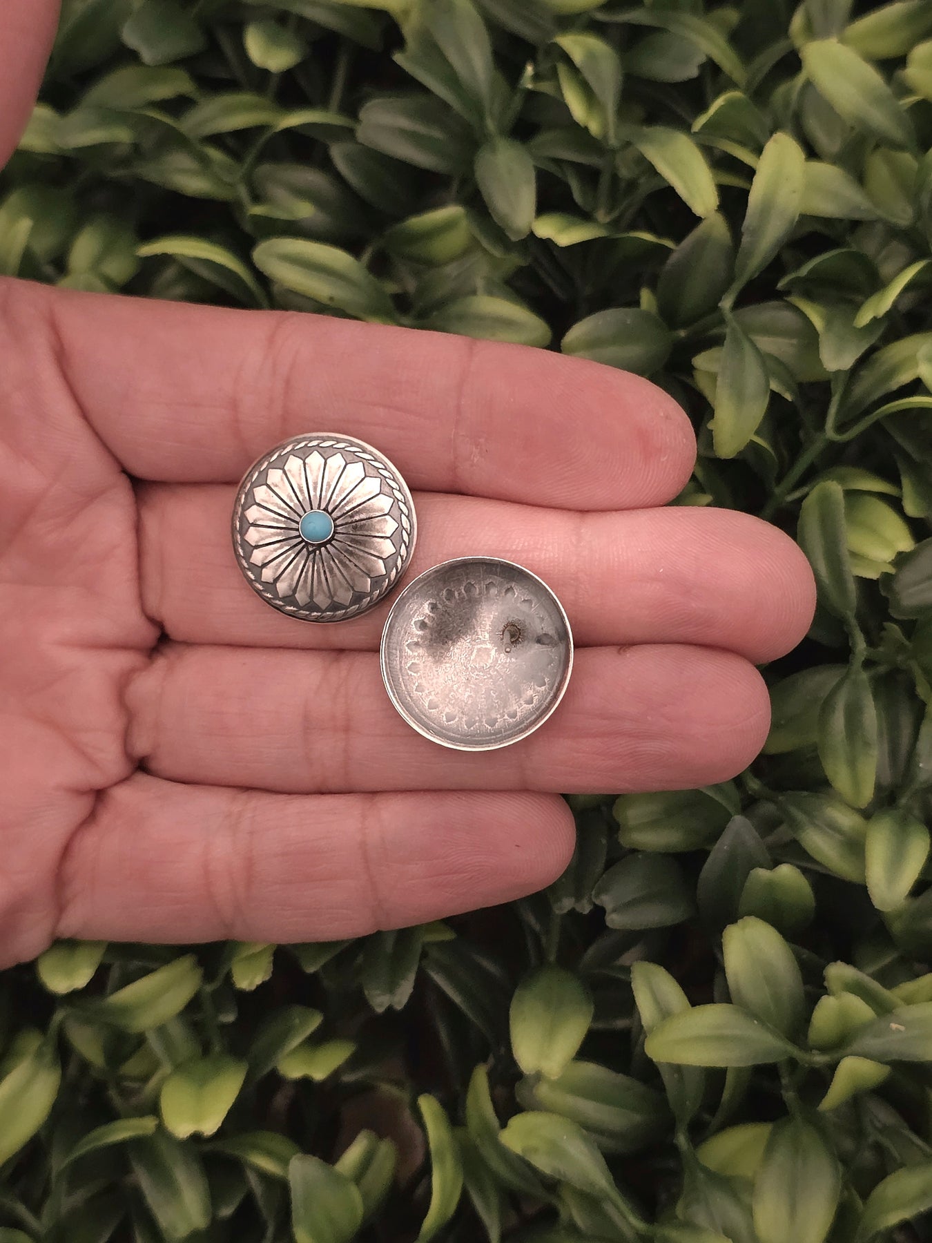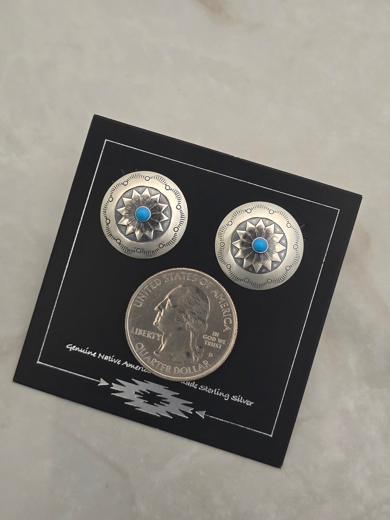 Sterling Silver Turquoise Concho Earrings