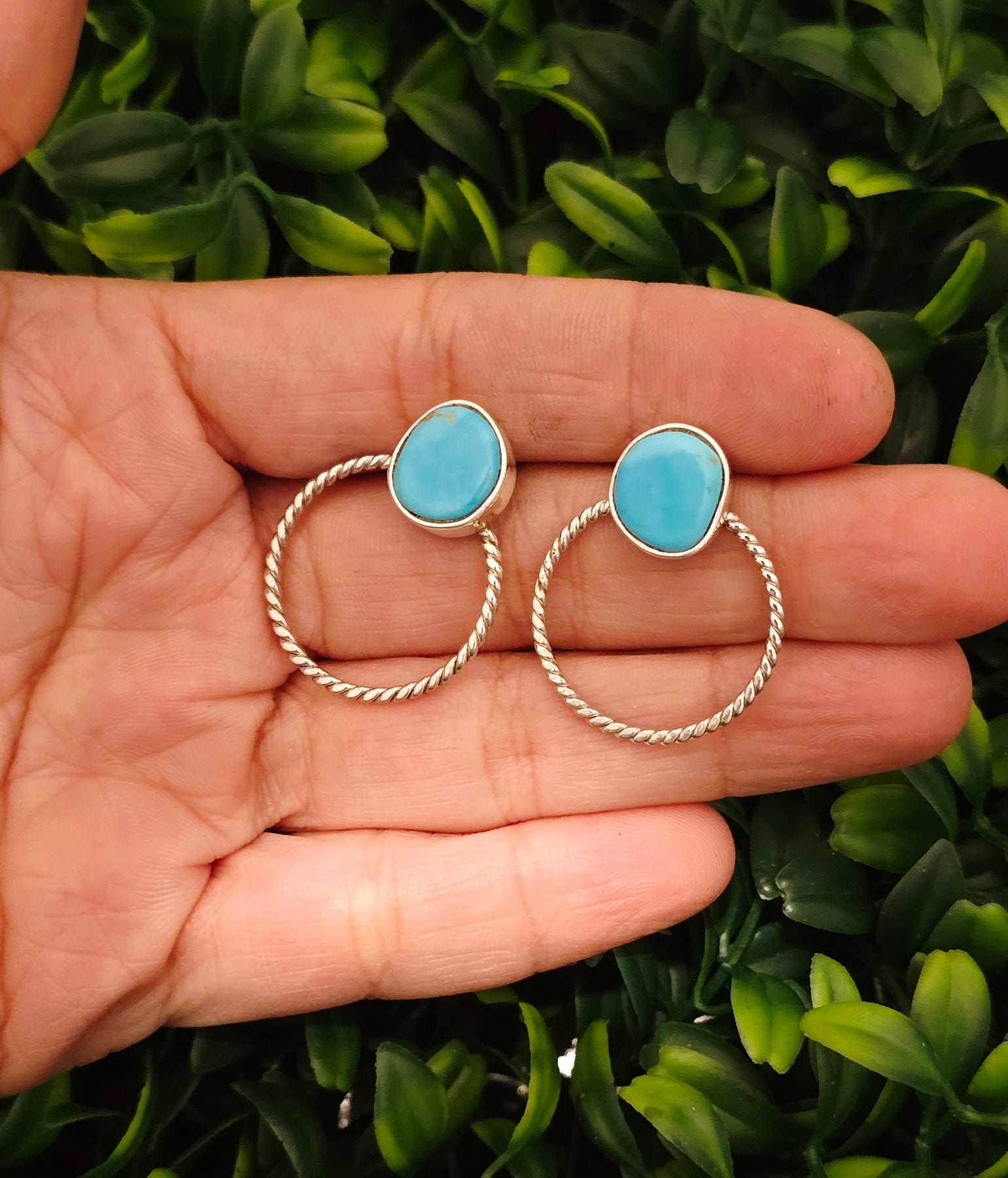 Sterling Silver Turquoise Hoop Earrings