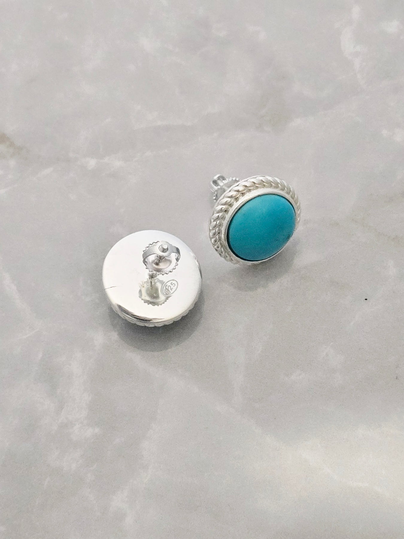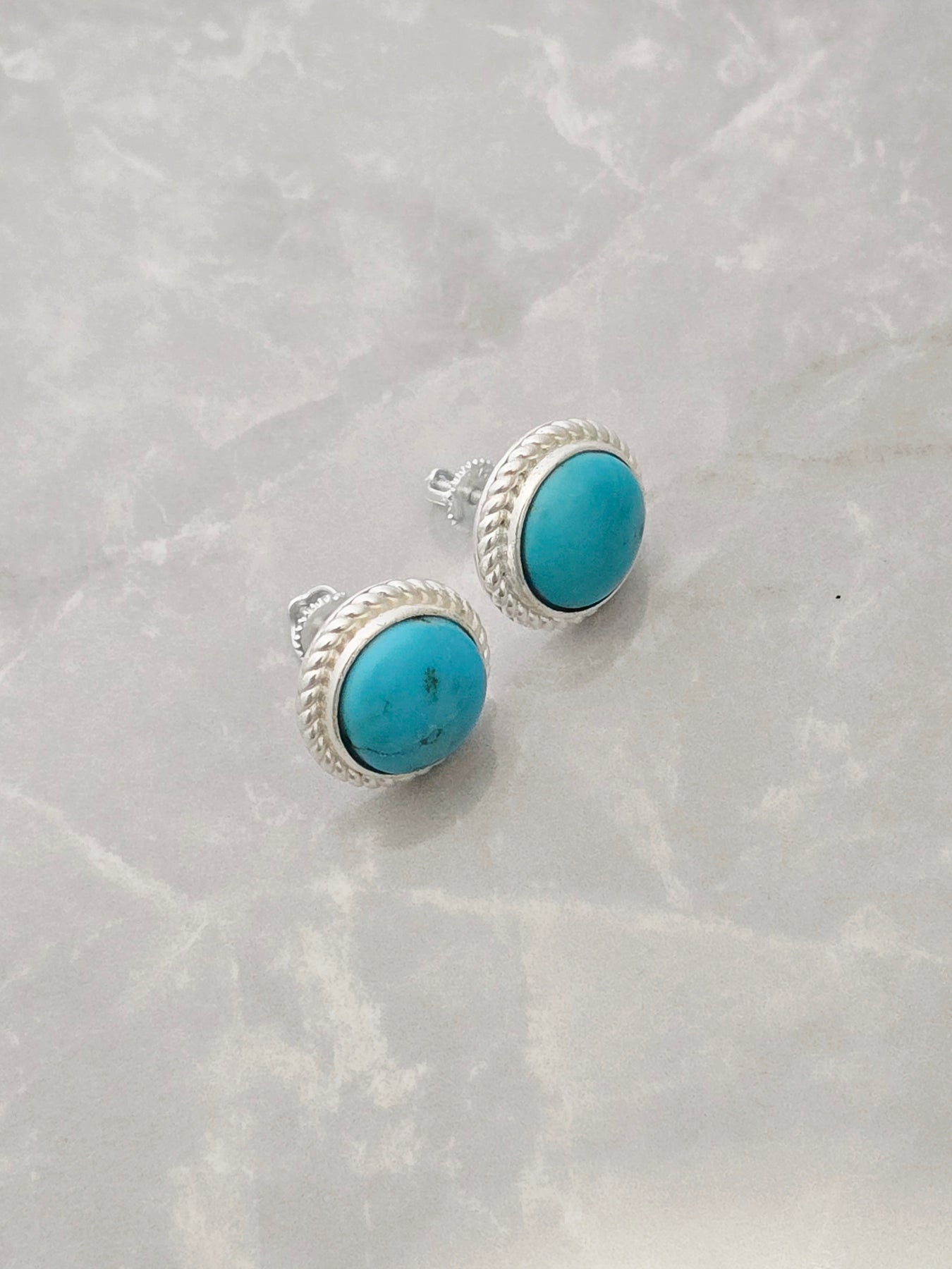 Sterling Silver Turquoise Rope Twist Round Stud Earrings