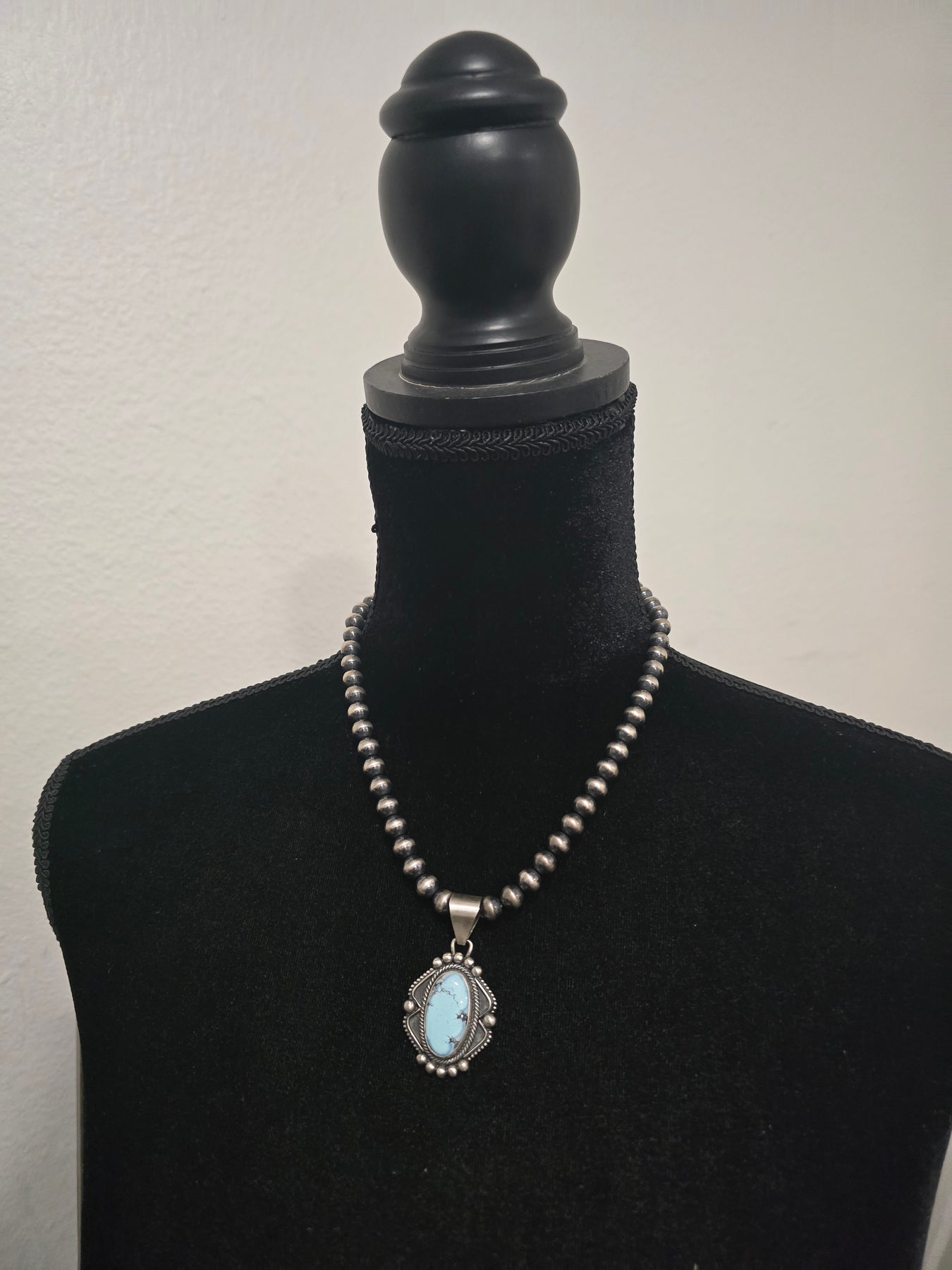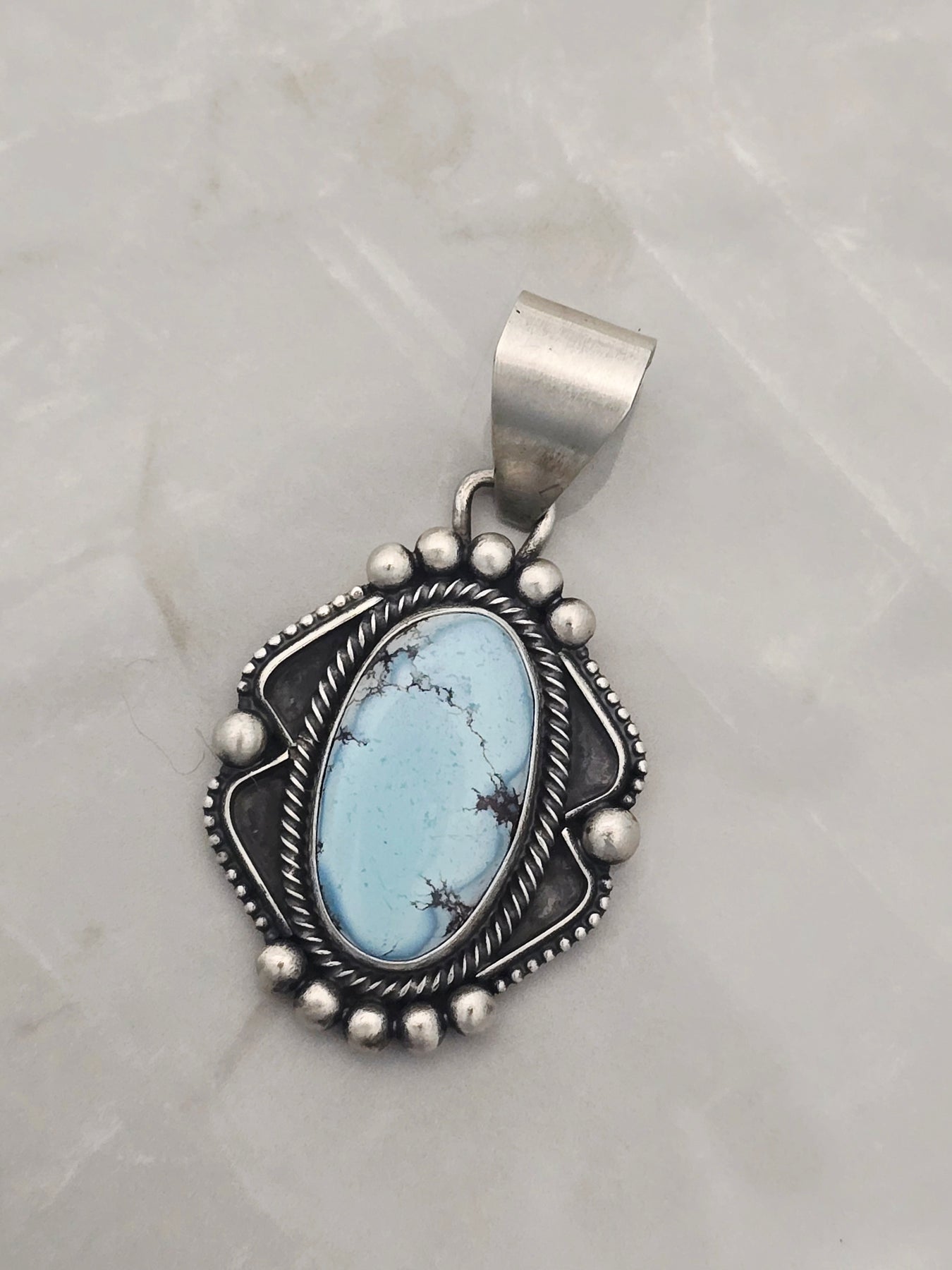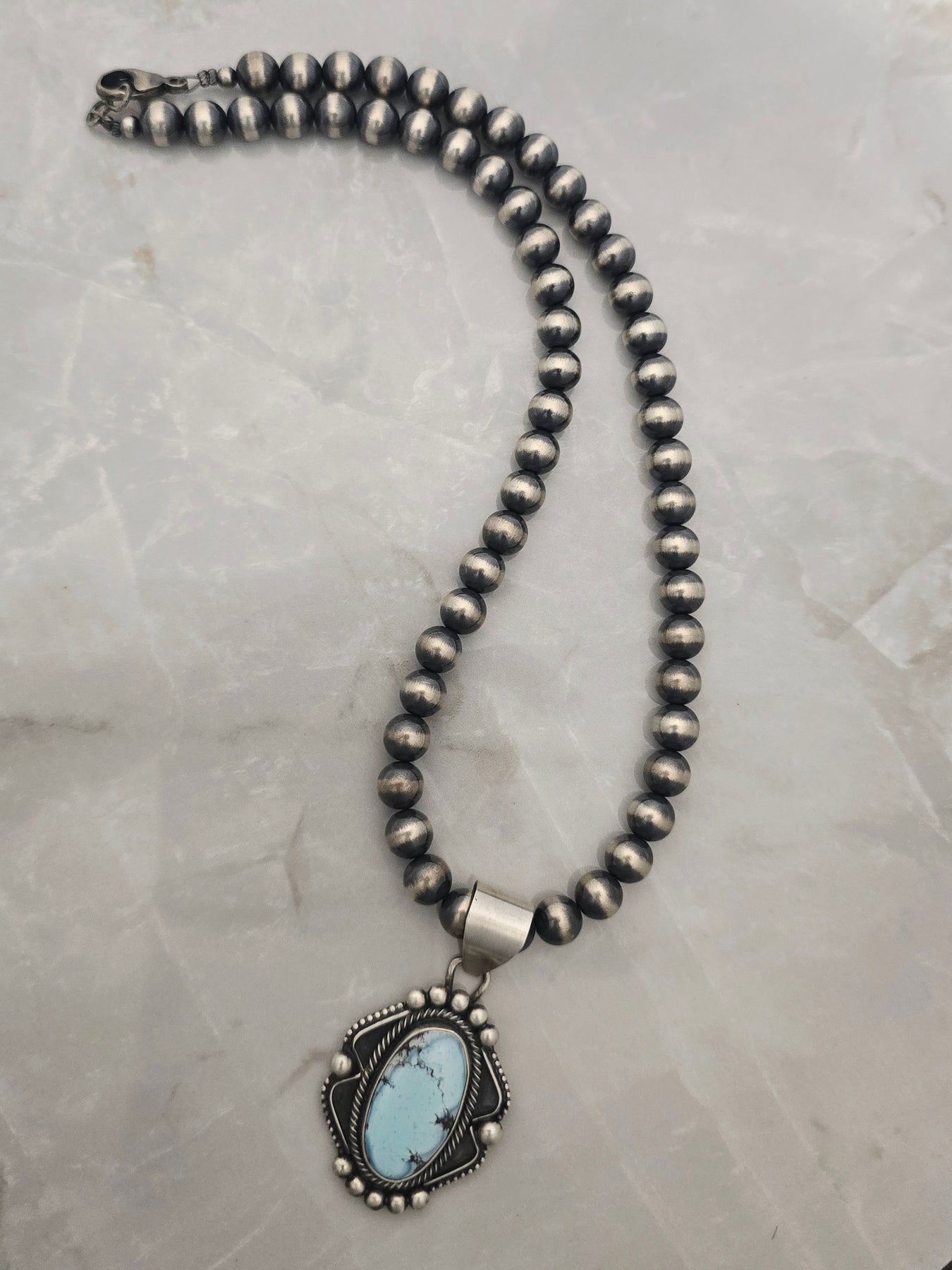 Pendant fits up to a 8mm Navajo pearl necklace, sold separately