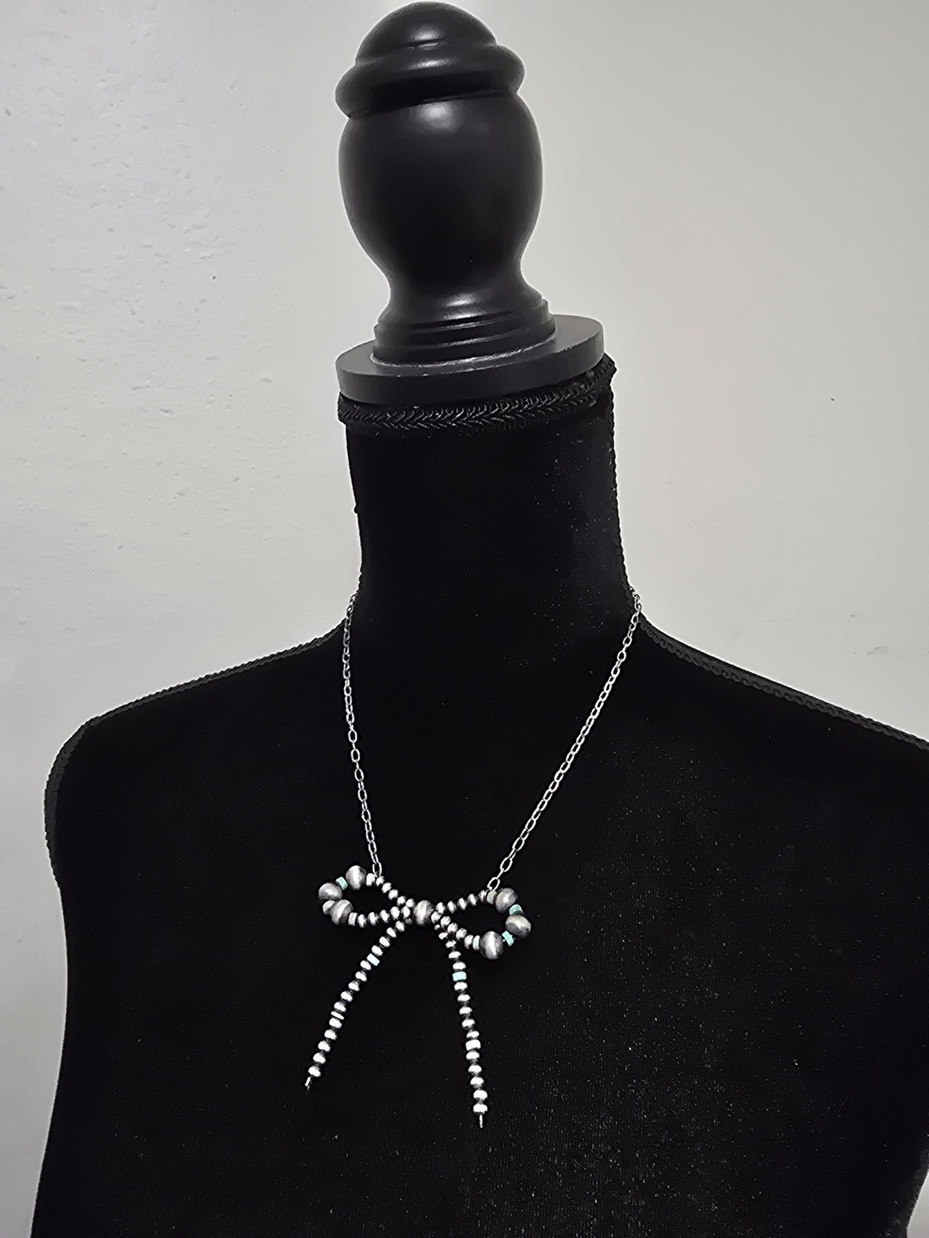 Sterling Silver Navajo Pearl & Turquoise Beaded Bow Necklace