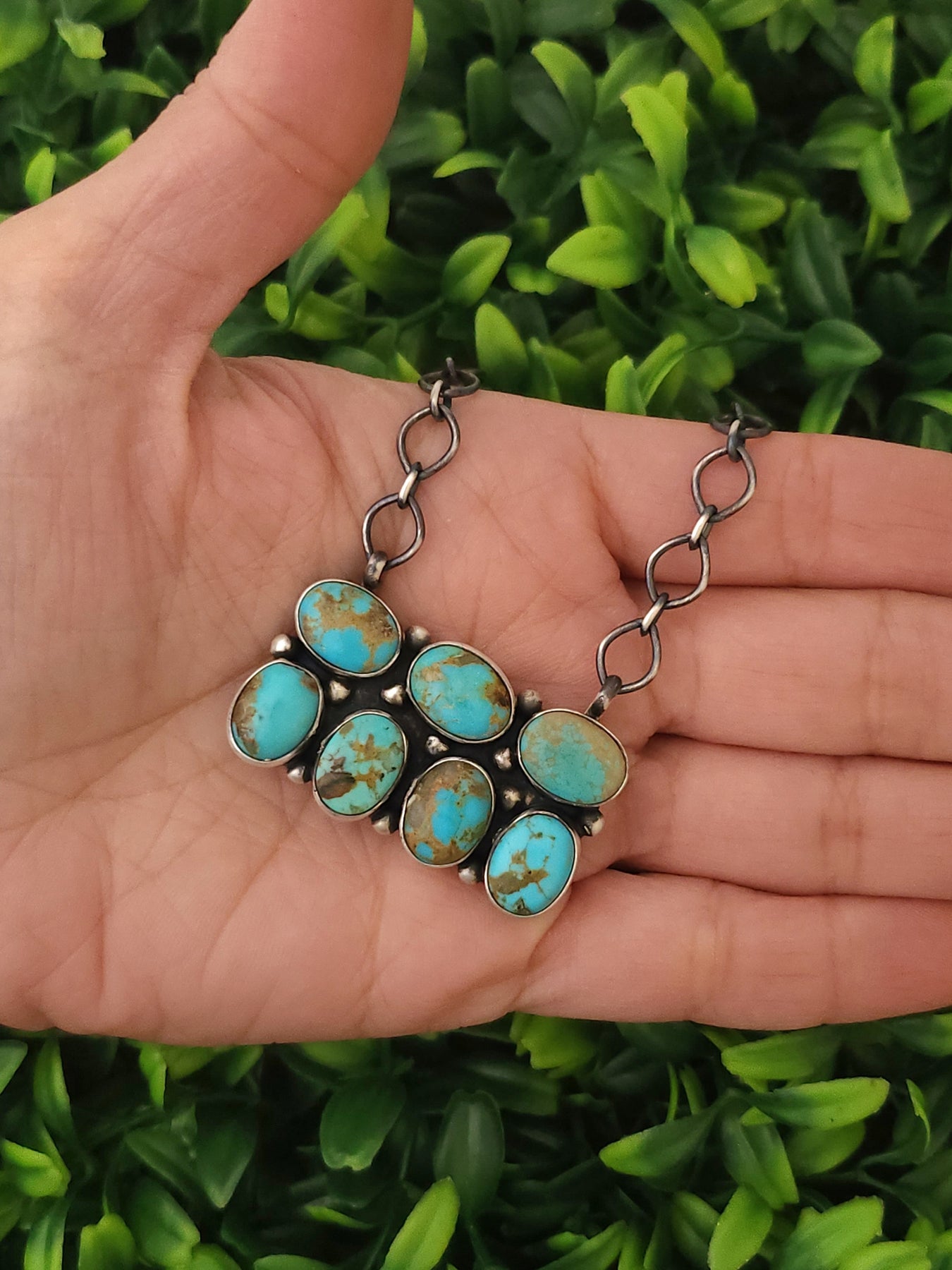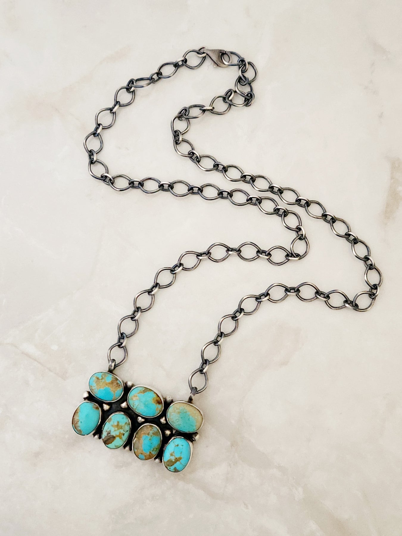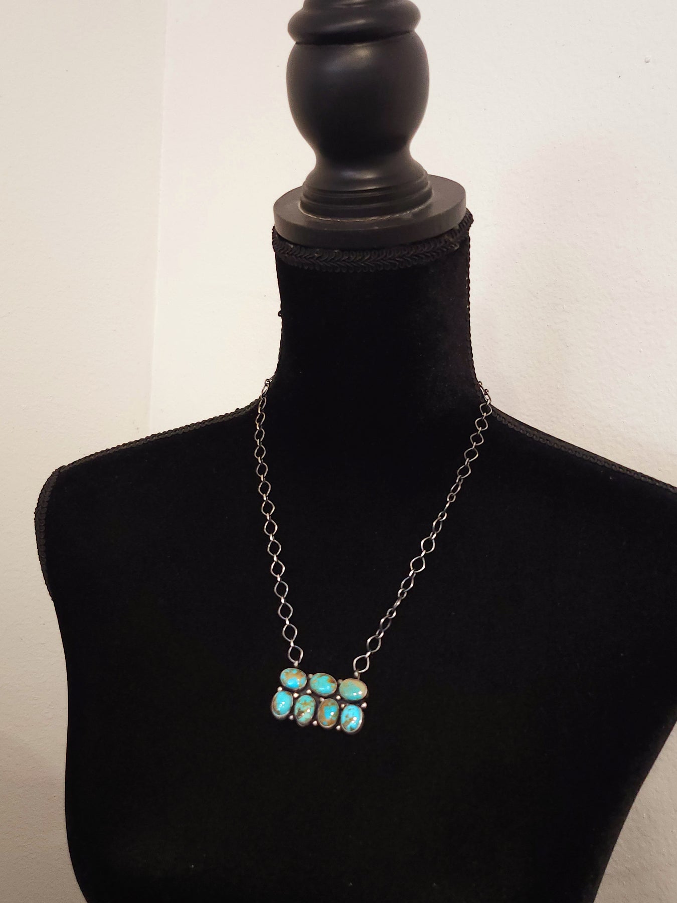 Necklace measures 20"inches long and chain is adjustable and can be worn shorter if needed