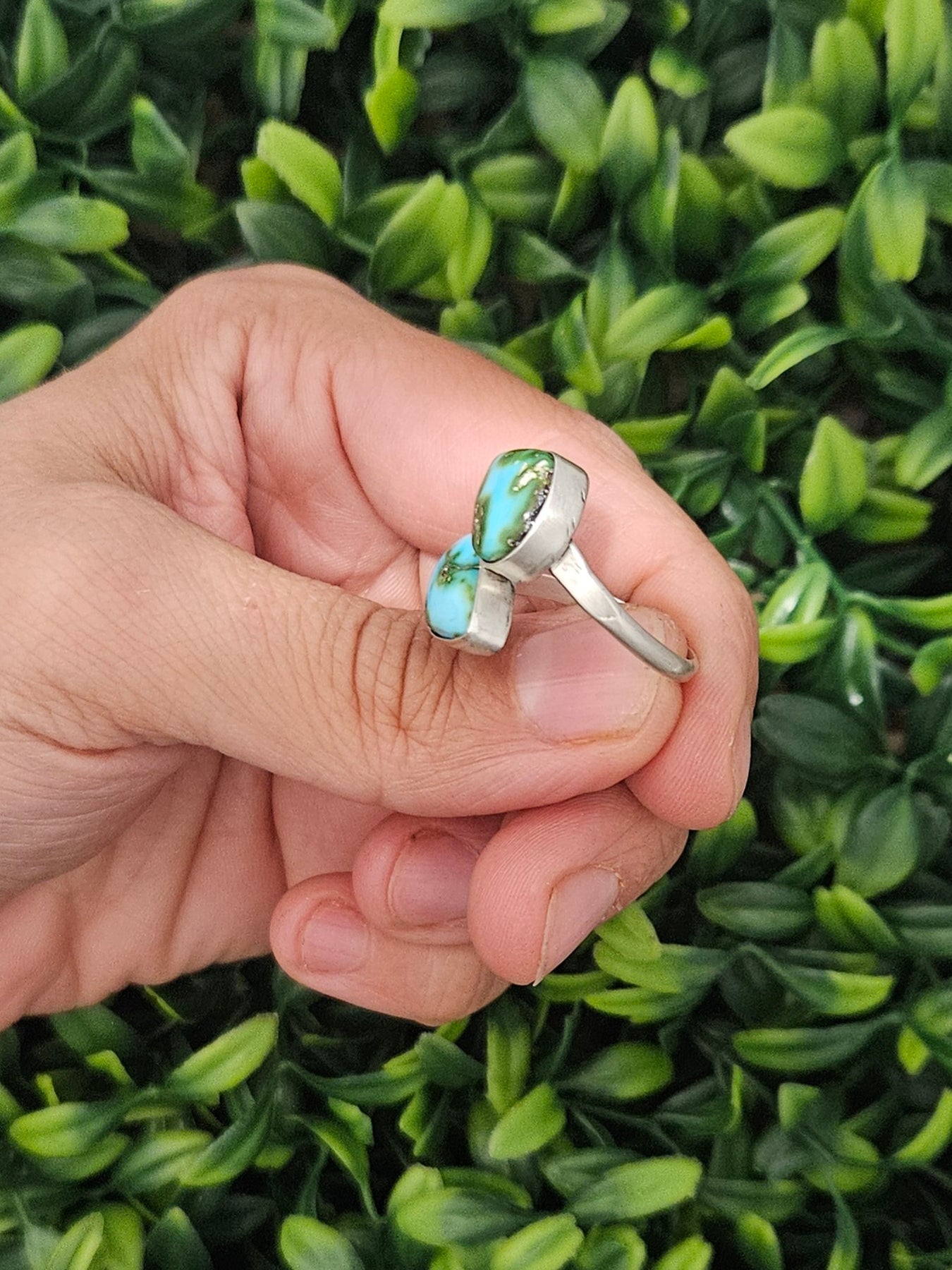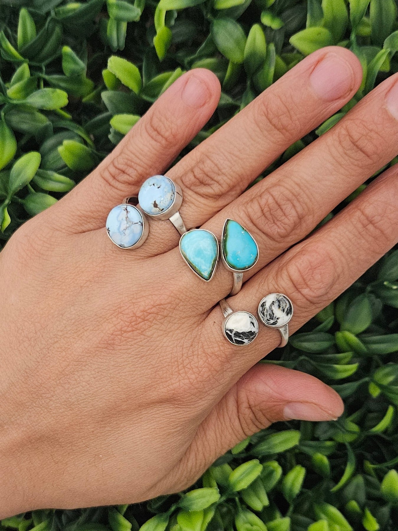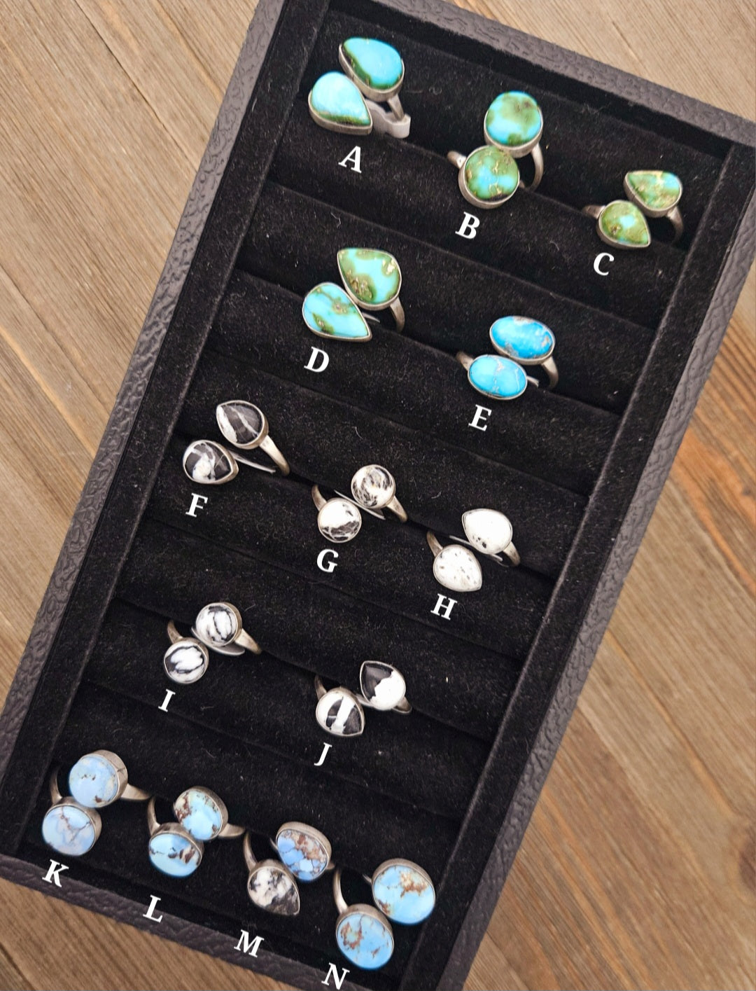 Sterling Silver Turquoise & White Buffalo 2 Stone Adjustable Rings
