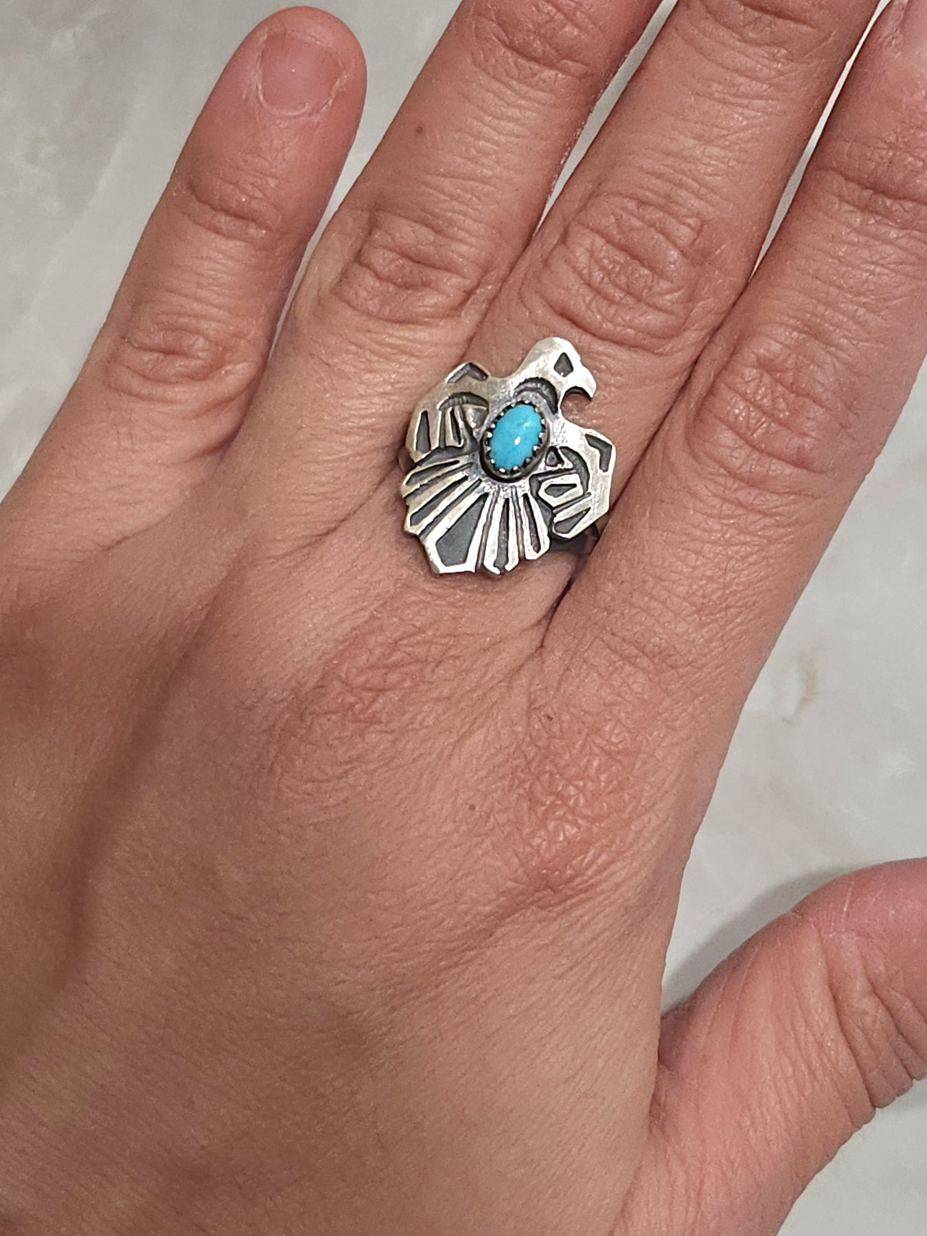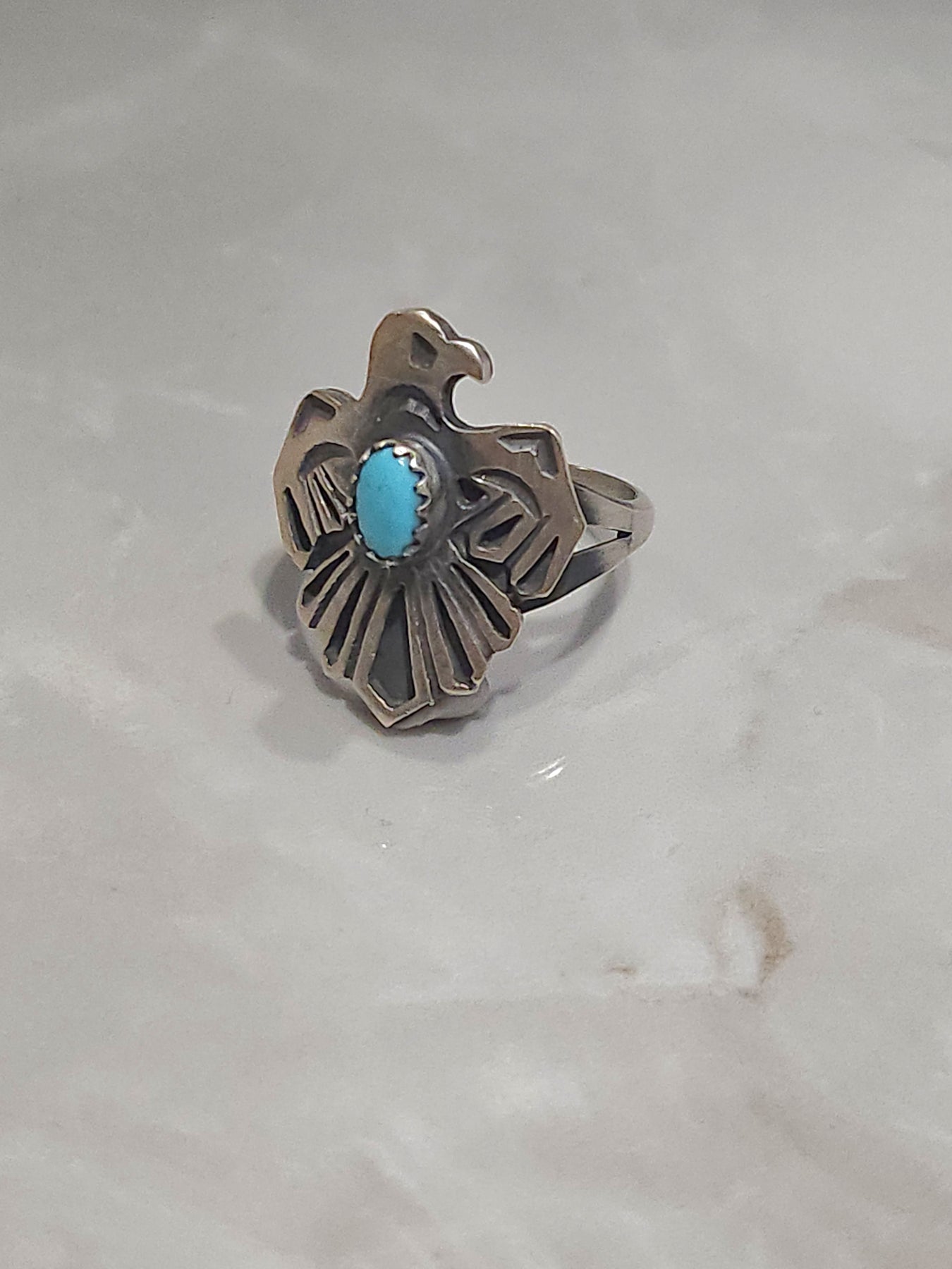 Stamped Sterling Silver Turquoise Thunderbird Ring