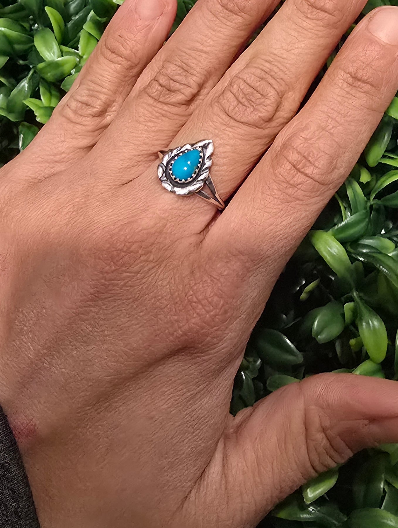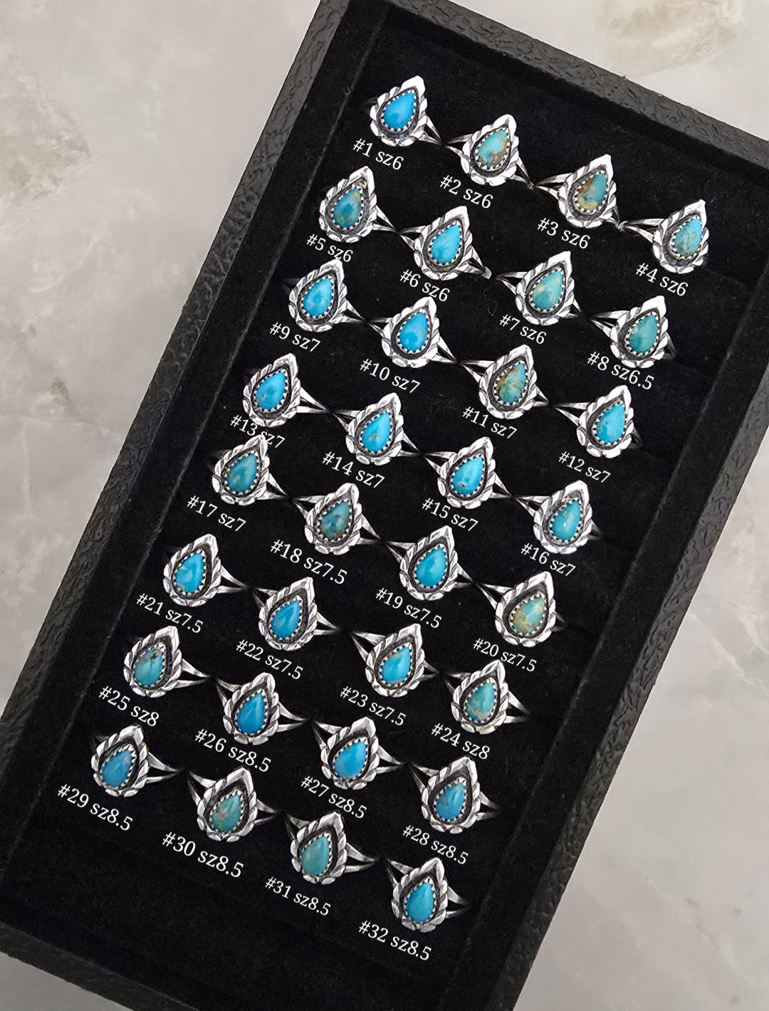 Sterling Silver Turquoise Stone Tear Drop Rings