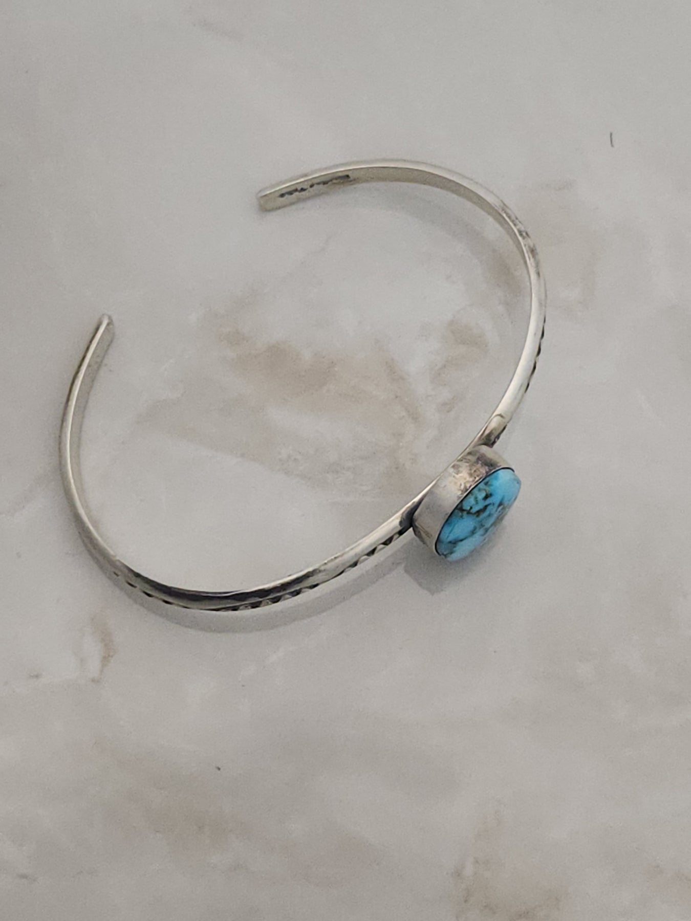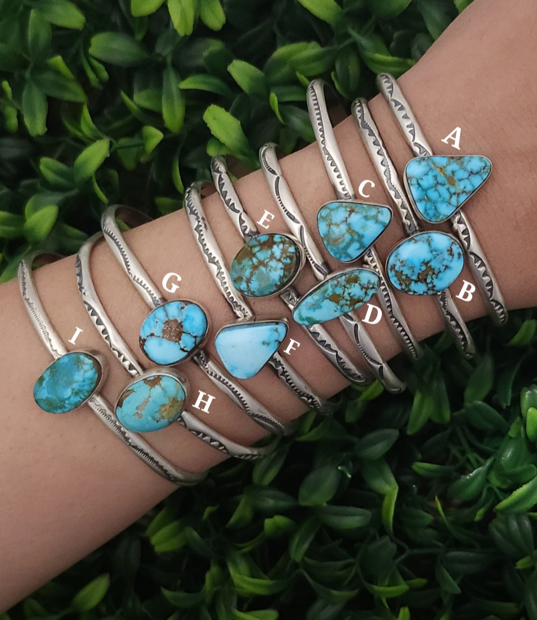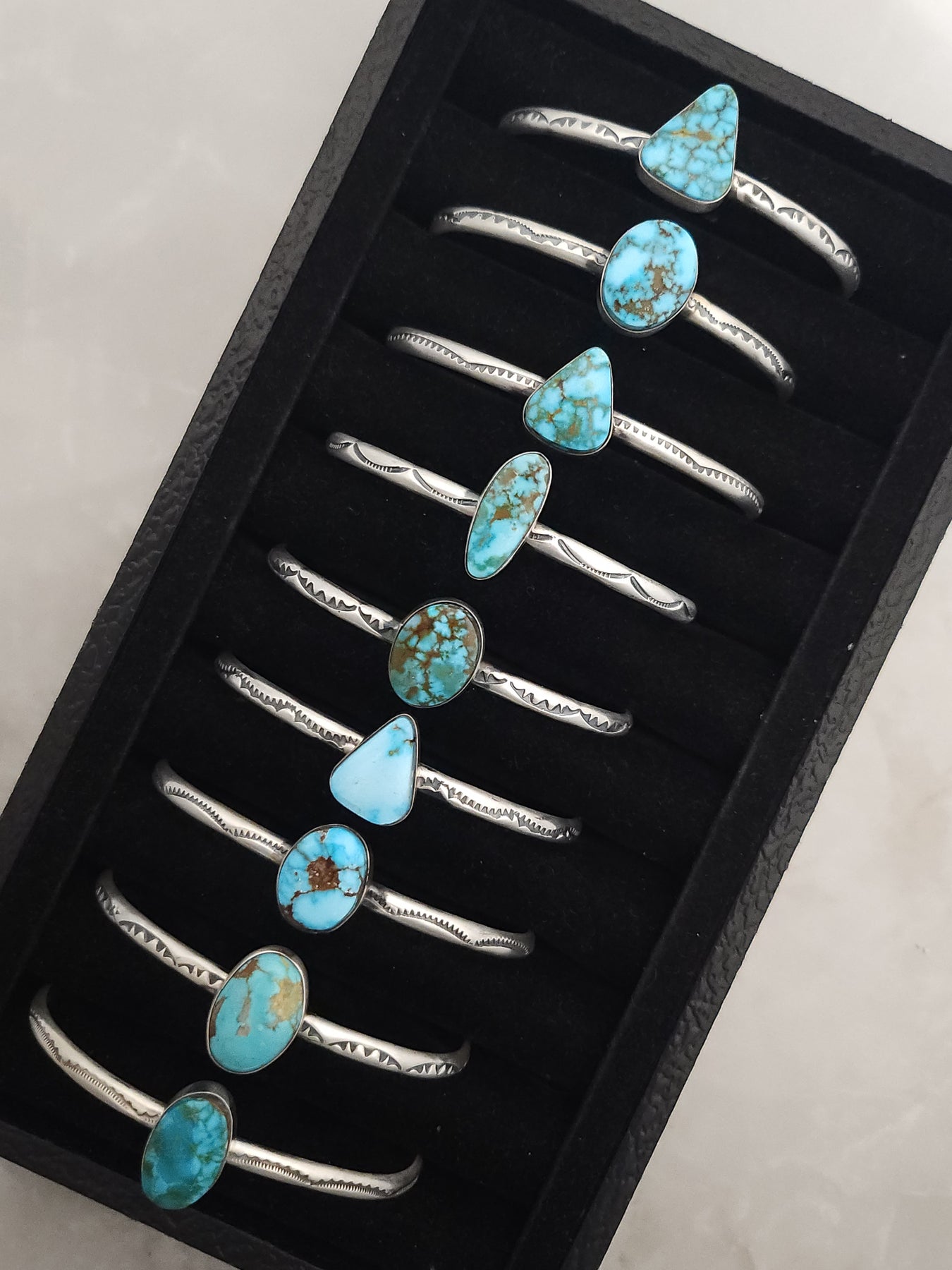 Stamped Sterling Silver Kingman Turquoise Stacker Cuff Bracelets