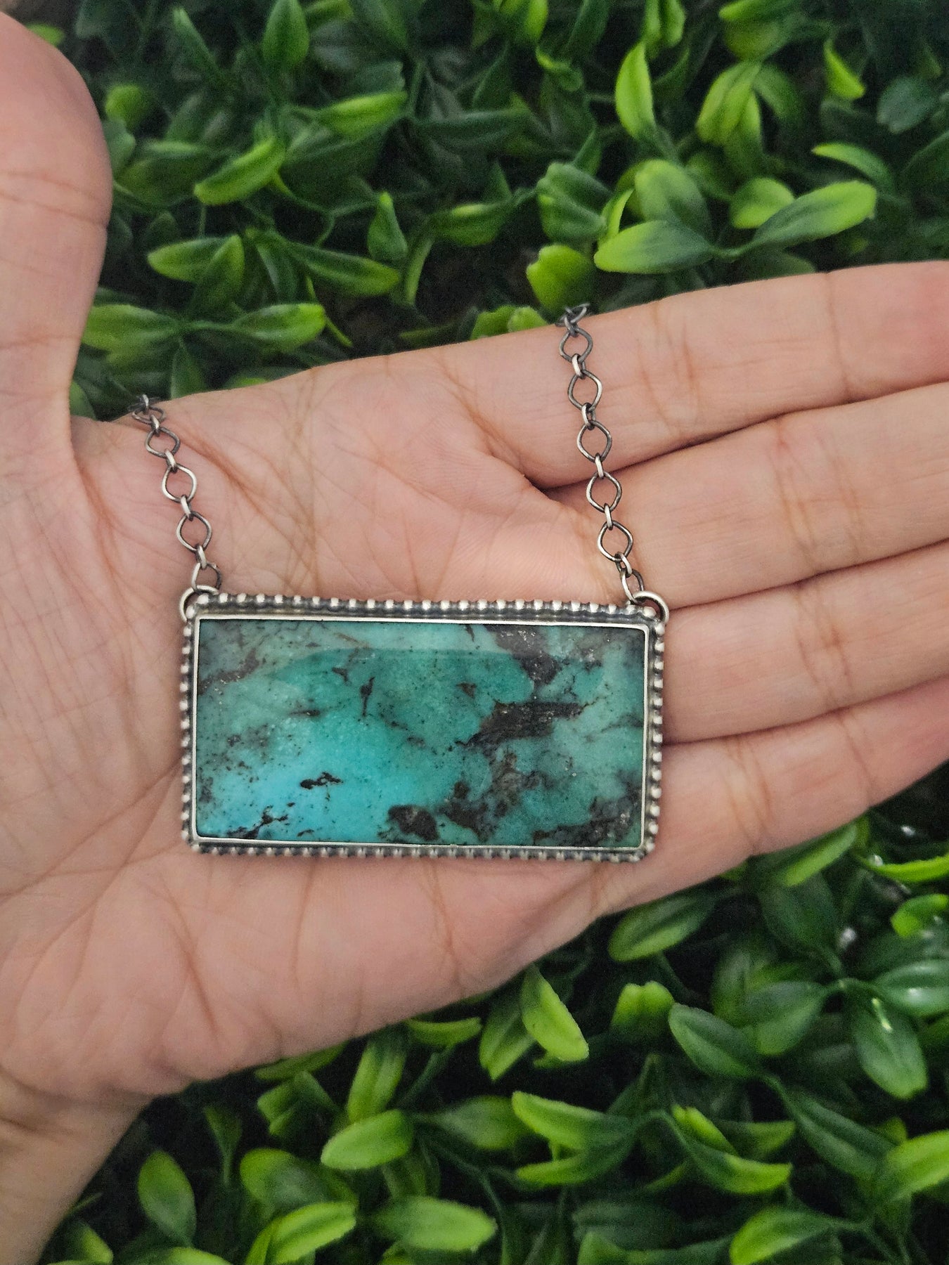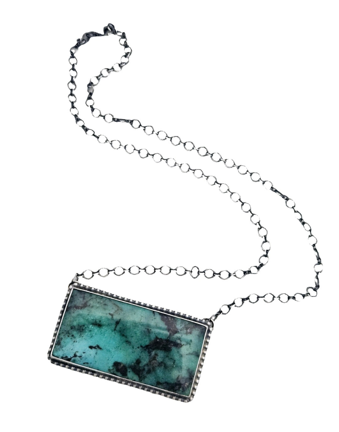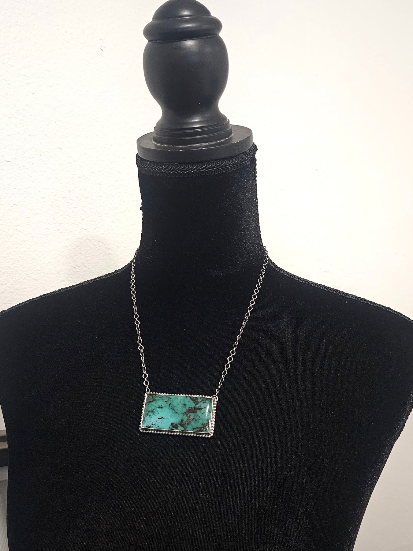 Necklace measures 18"inches long and chain is adjustable and can be worn shorter