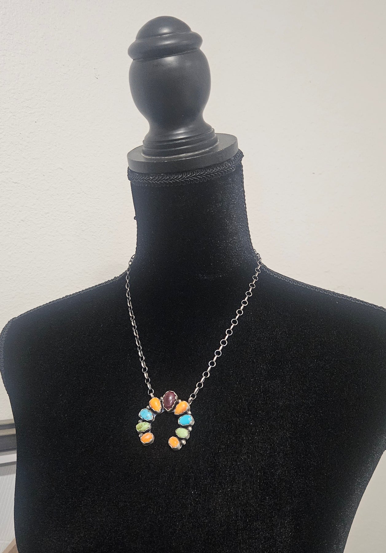 Necklace measures approximately 18 1/2"inches longnand chain is adjustable and can be worn shorter