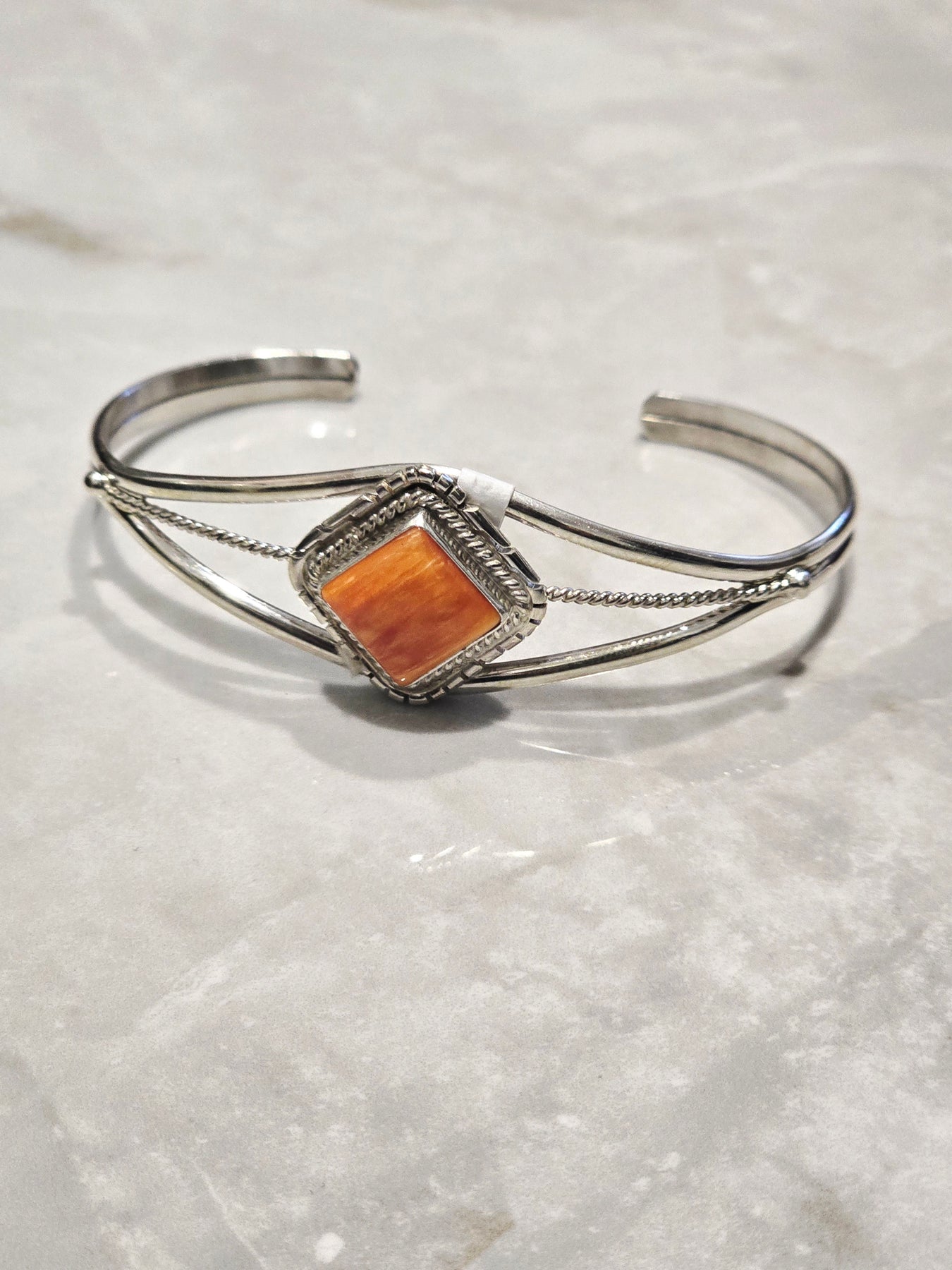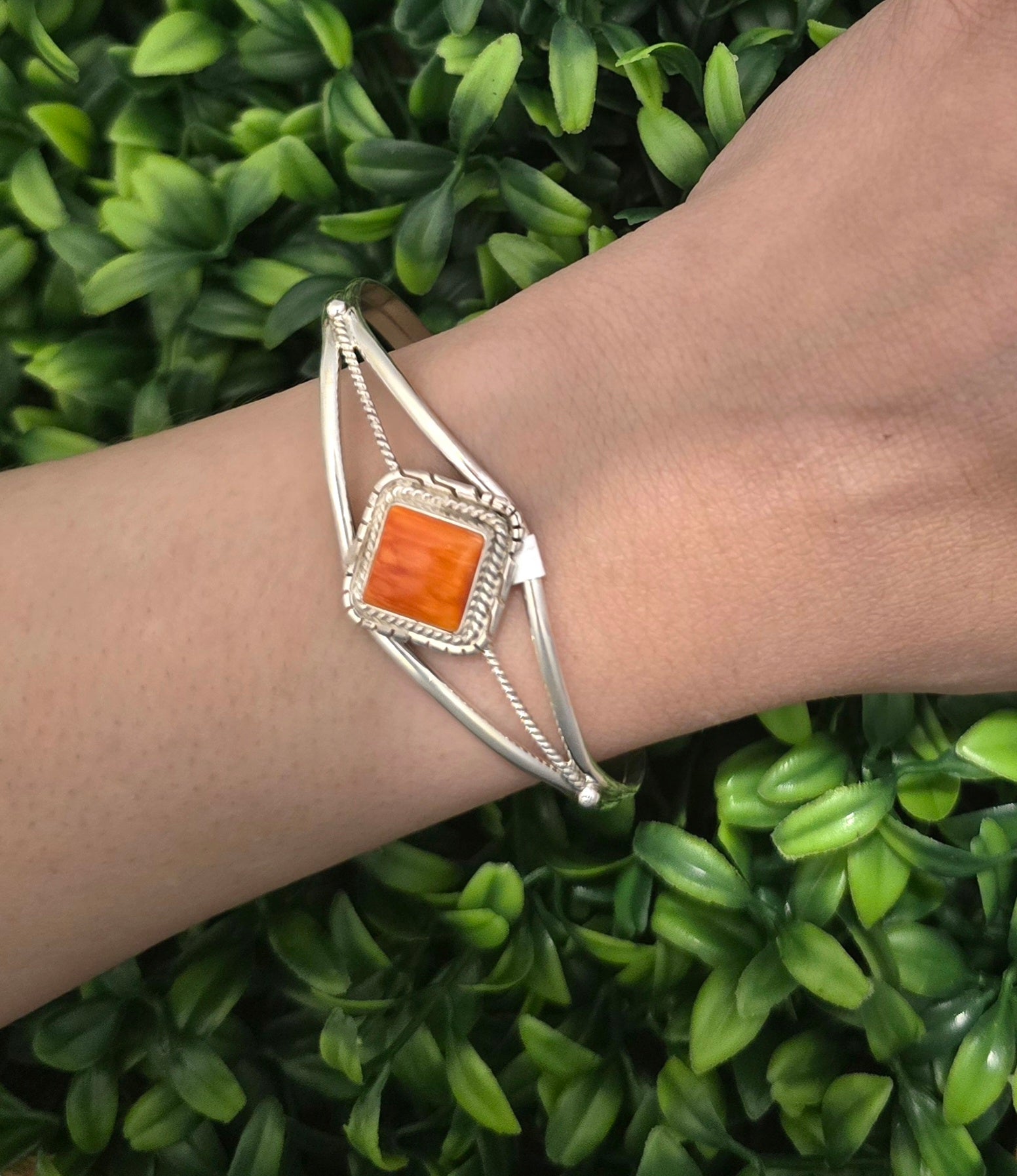 Stamped Sterling Silver Orange Spiny Oyster Bracelet