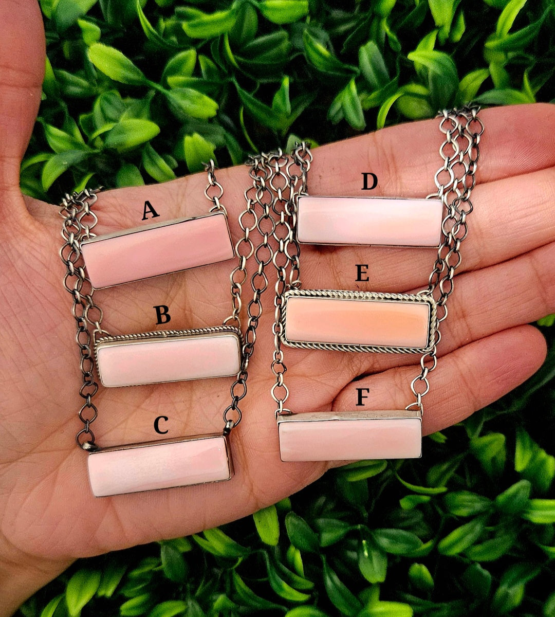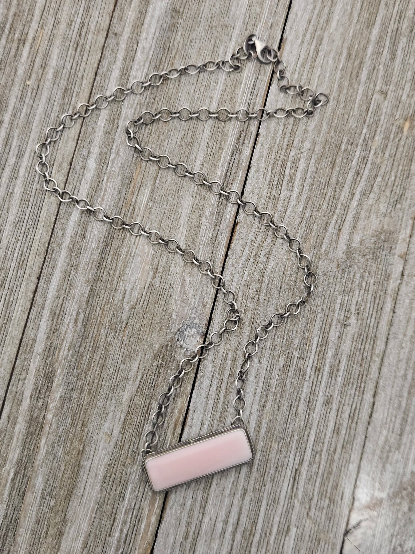 Stamped Sterling Silver Pink Conch Bar Necklaces