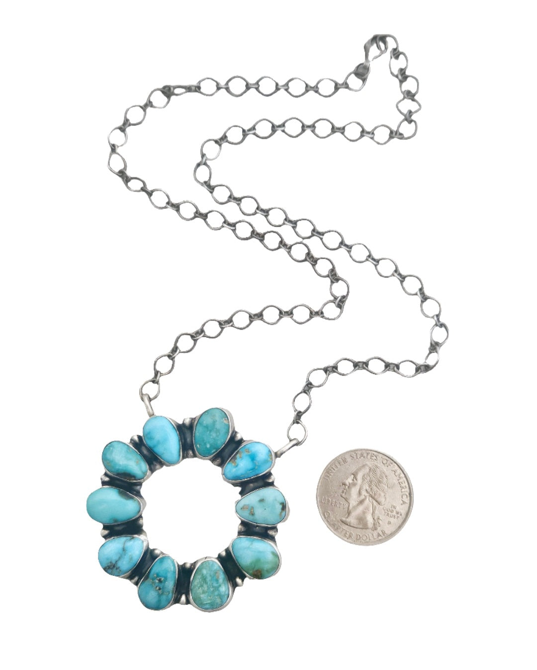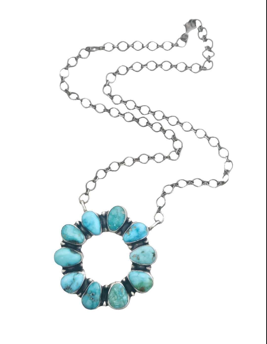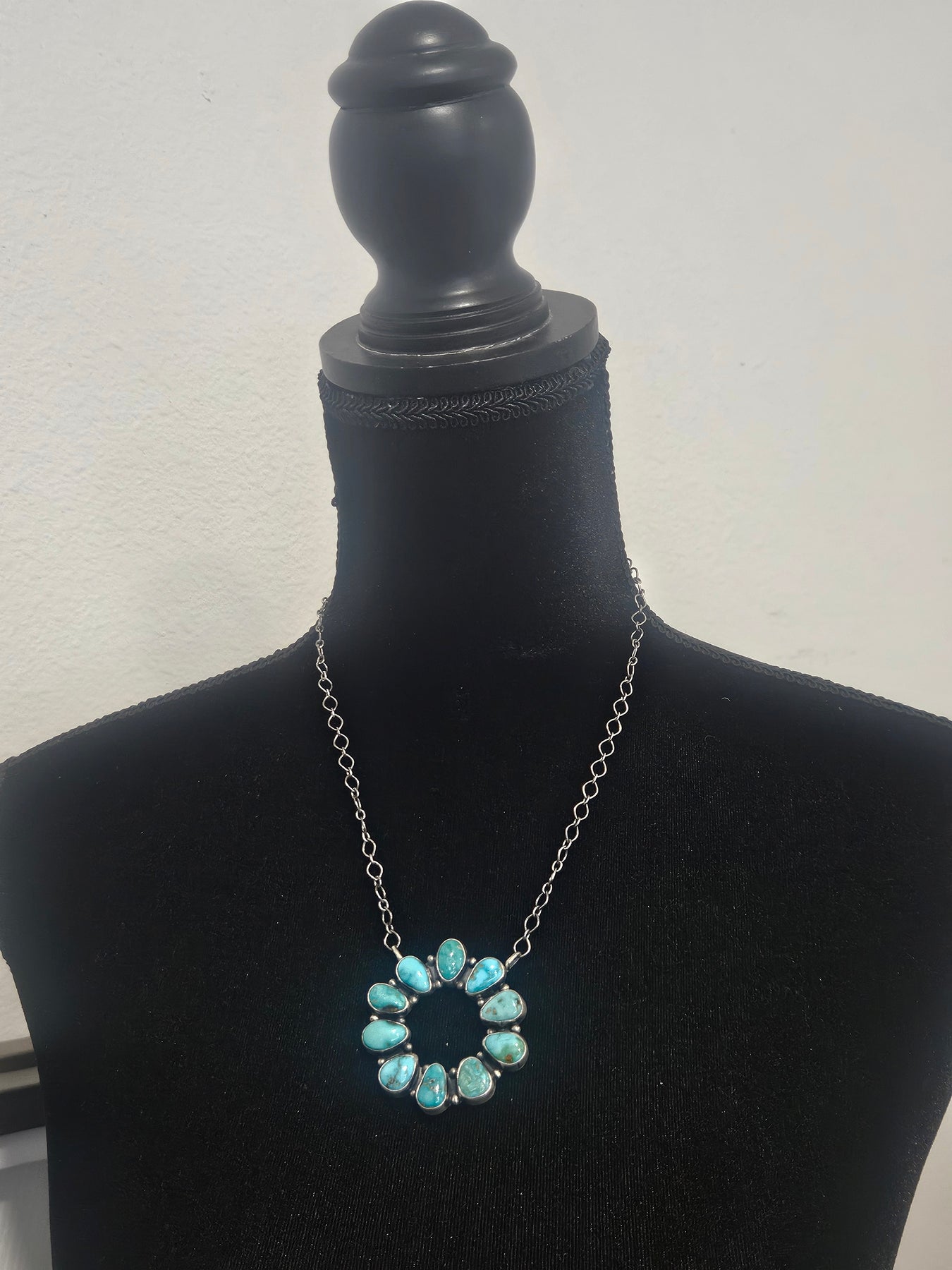 Necklace measures approximately 18"inches long and chain is adjustable and can be worn shorter