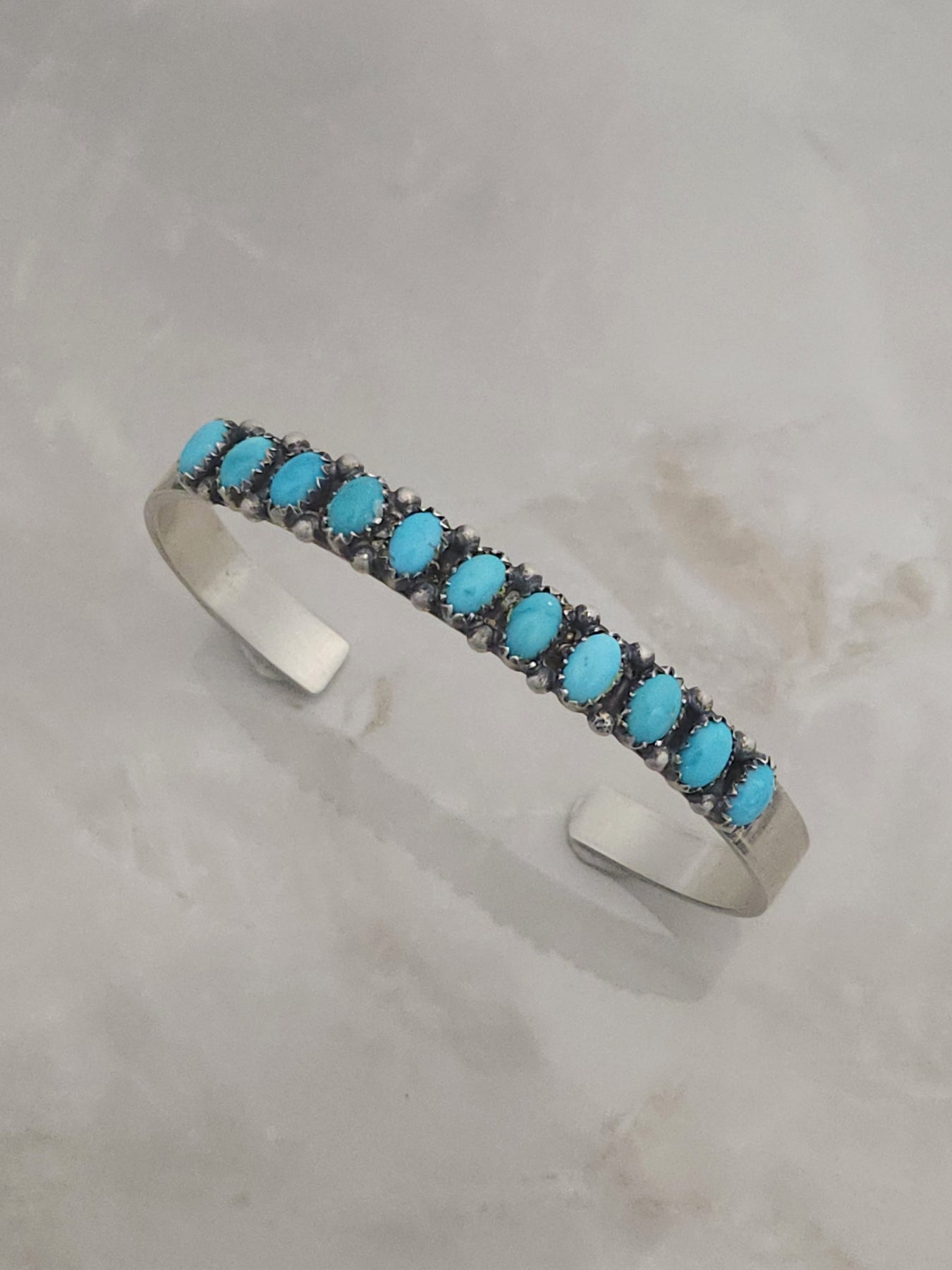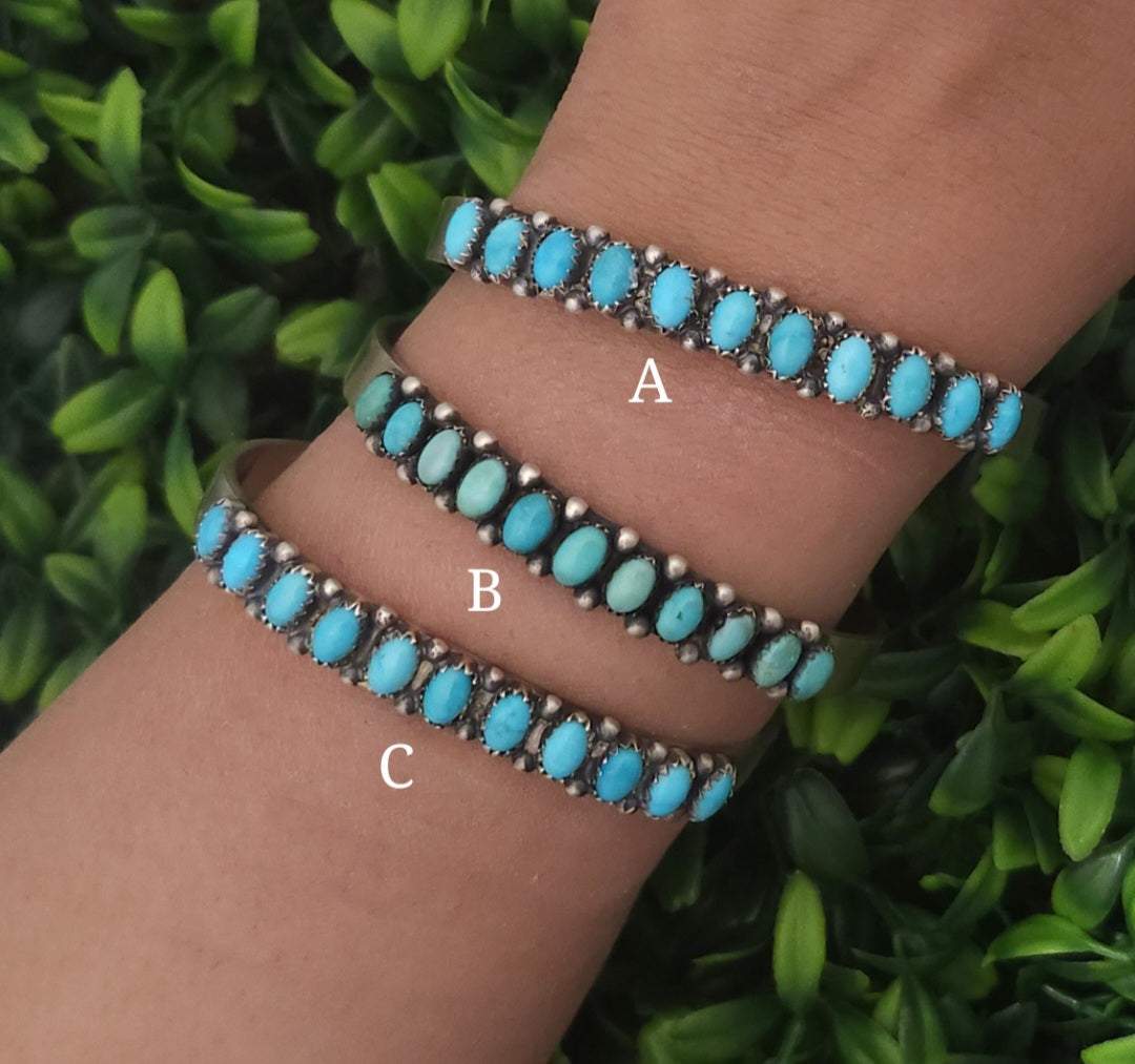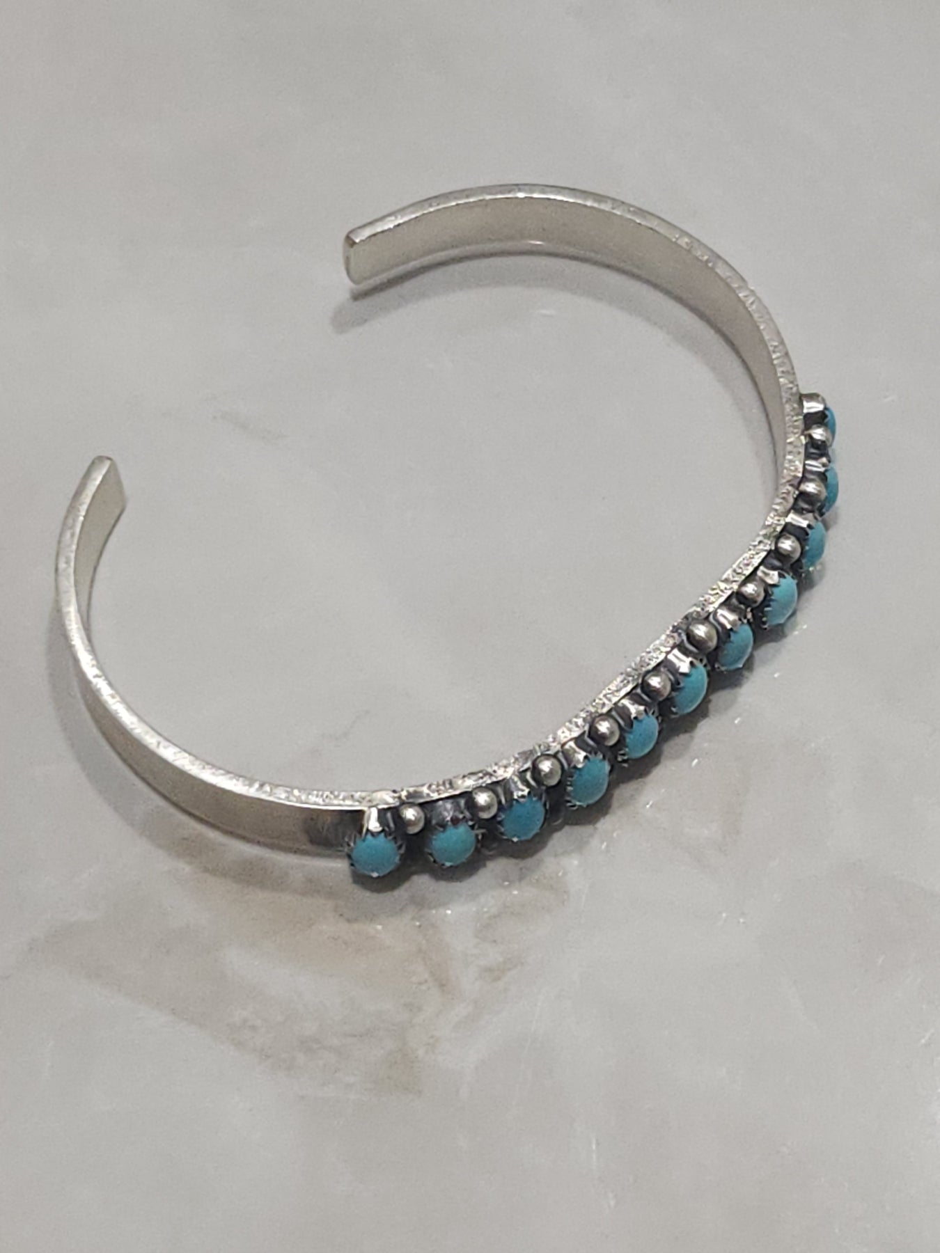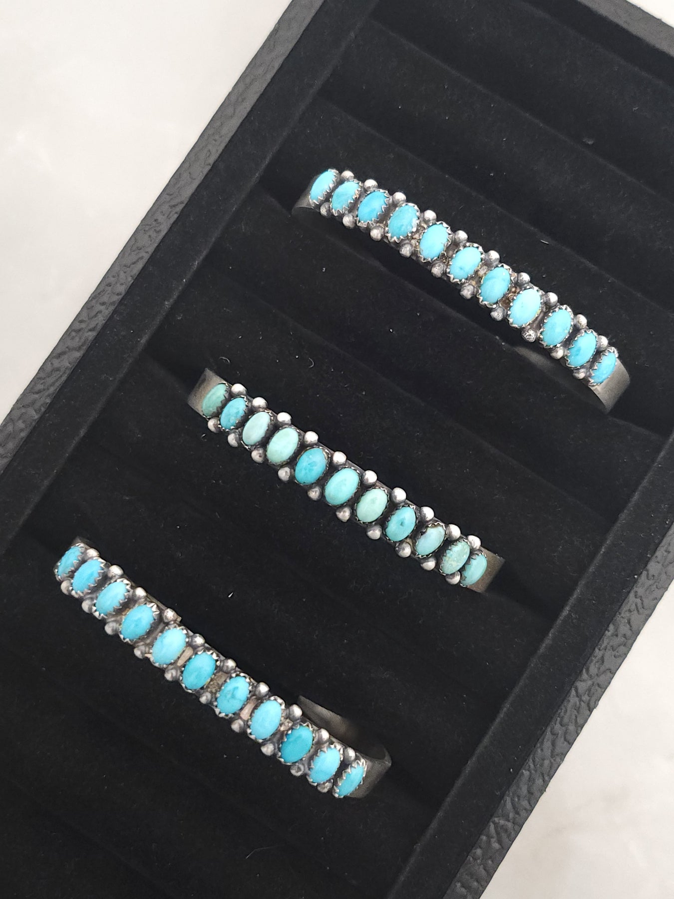 Stamped Sterling Silver Turquoise 11 Stone Stacker Cuff Bracelets