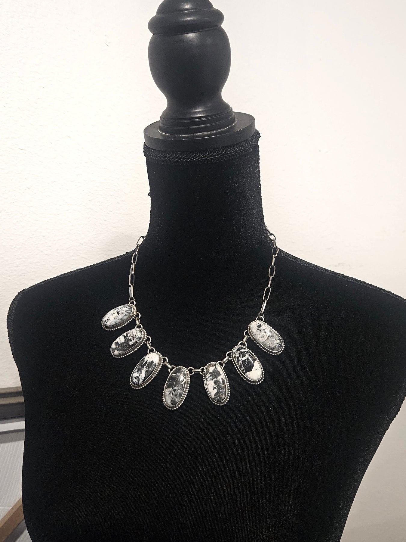 Necklace measures approximately 20"inches long and chain is adjustable and can be worn shorter