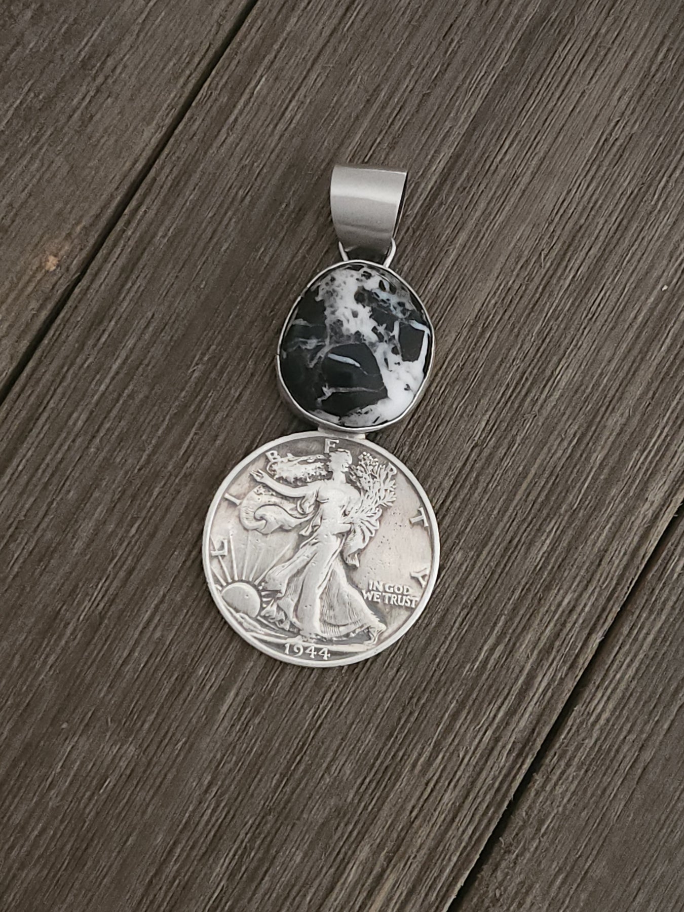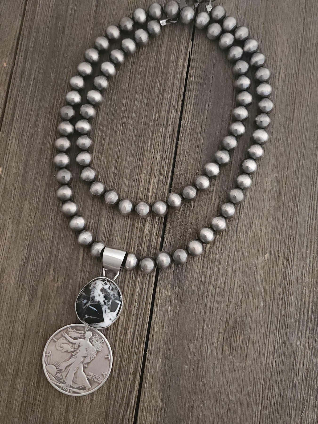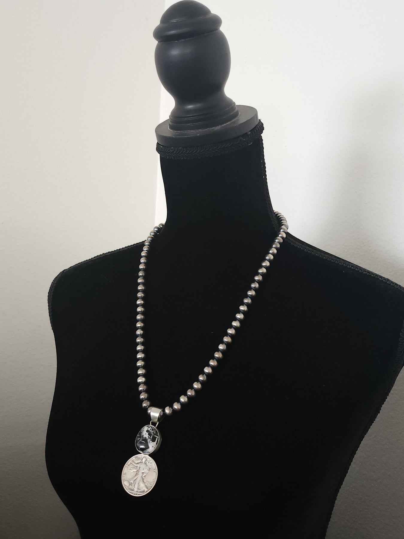 Pendant measures 2 3/4"inches long and can fit up to a 8mm Navajo Pearl Necklace, Sold Separately