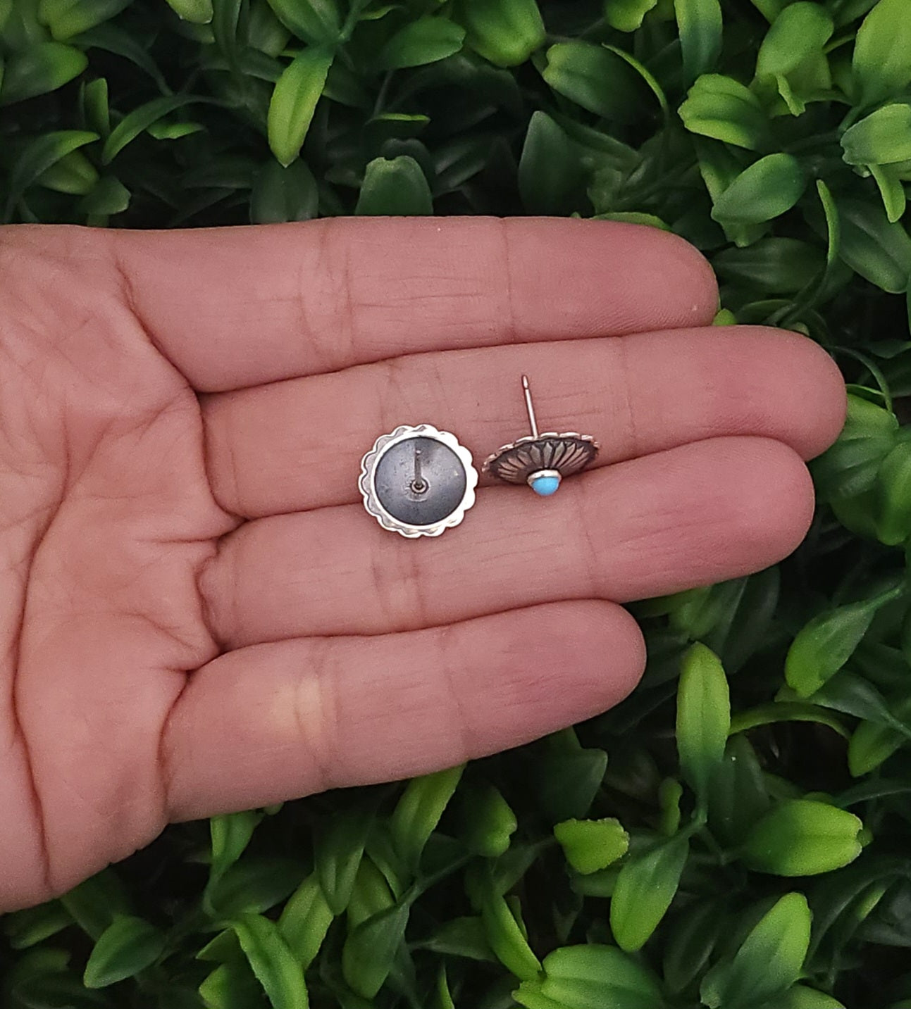 Sterling Silver Turquoise & Plain Concho Stud Earrings